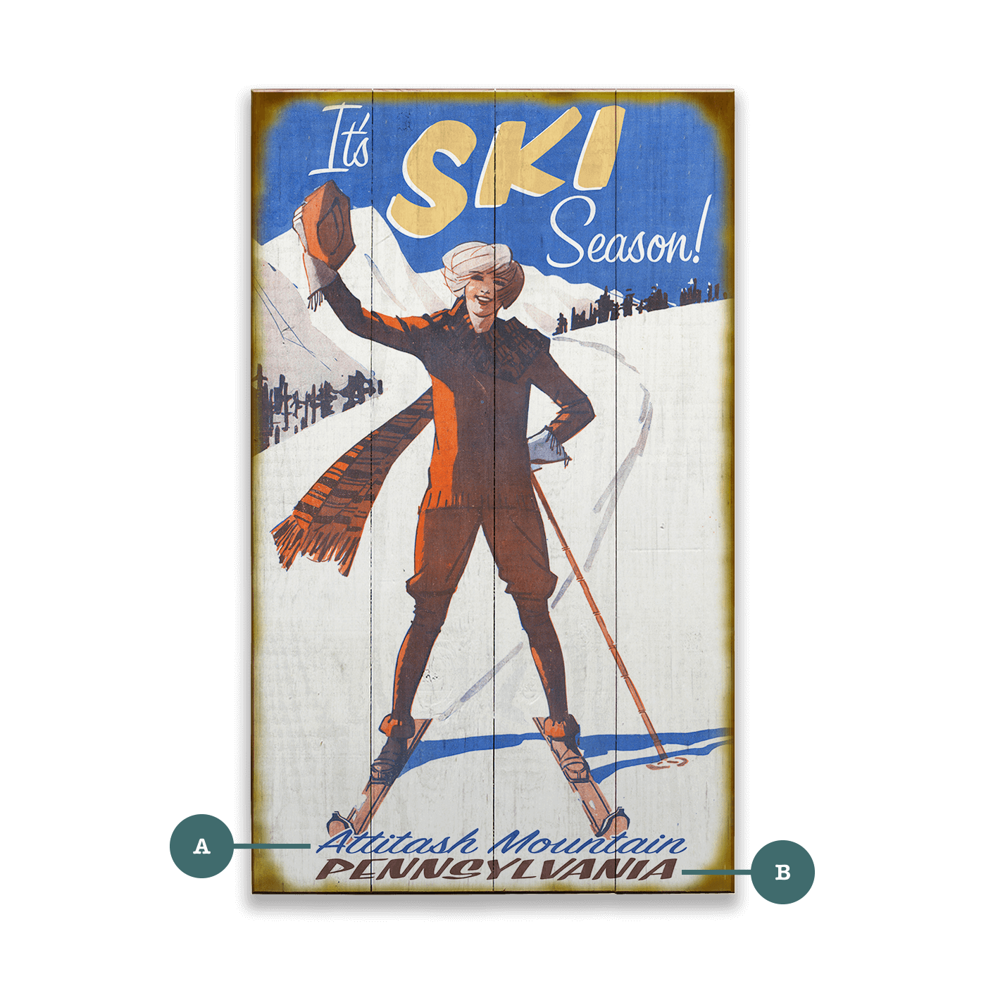 Loyd, who had been dabbling in cartooning and surfing, was encouraged to take an art class taught by Eric Titlebaum, a cartoonist of Playboy Magazine notoriety. With time to tinker during the desolate winters, Laura began asking Loyd to create merchandise for their shop. Recognizing the untapped potential of the skiing crowd, they started designing and producing unique wood and metal signs inspired by vintage ephemera.