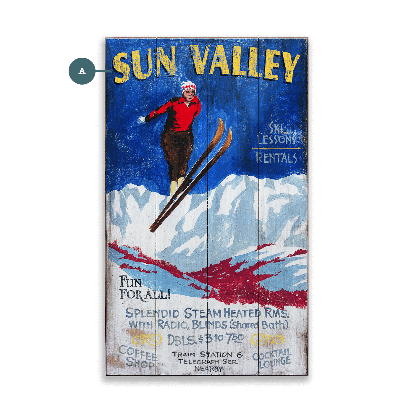 This vintage-inspired artwork showcases a dynamic skier in mid-air against a backdrop of snowy mountains, evoking the excitement of classic winter sports. The bold colors and nostalgic design capture the charm of early ski resort advertisements, making it perfect for those who appreciate retro decor. Ideal for ski enthusiasts or anyone looking to bring a touch of alpine adventure to their home, this piece adds a sense of fun and energy to any space.