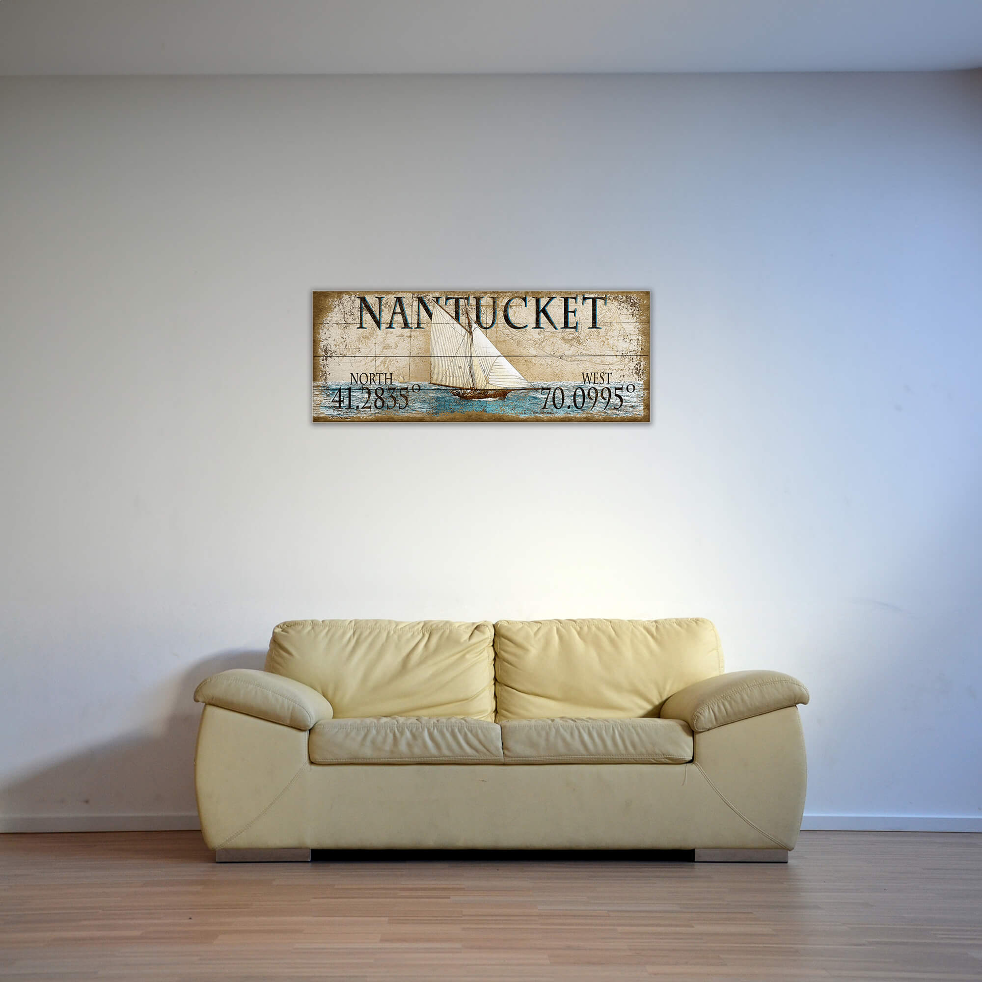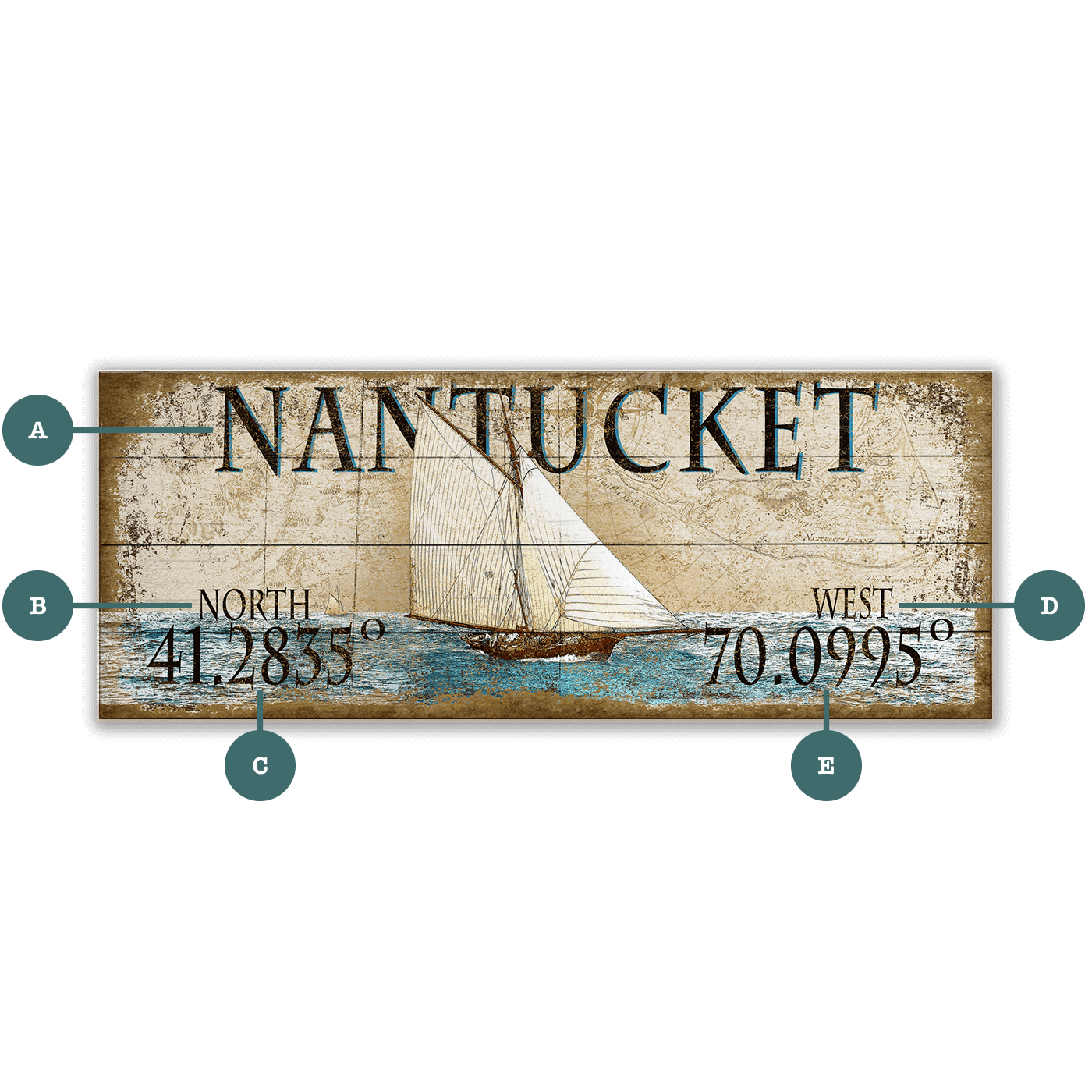 Vintage Sailboat Latitude - Wood & Metal Wall Art
