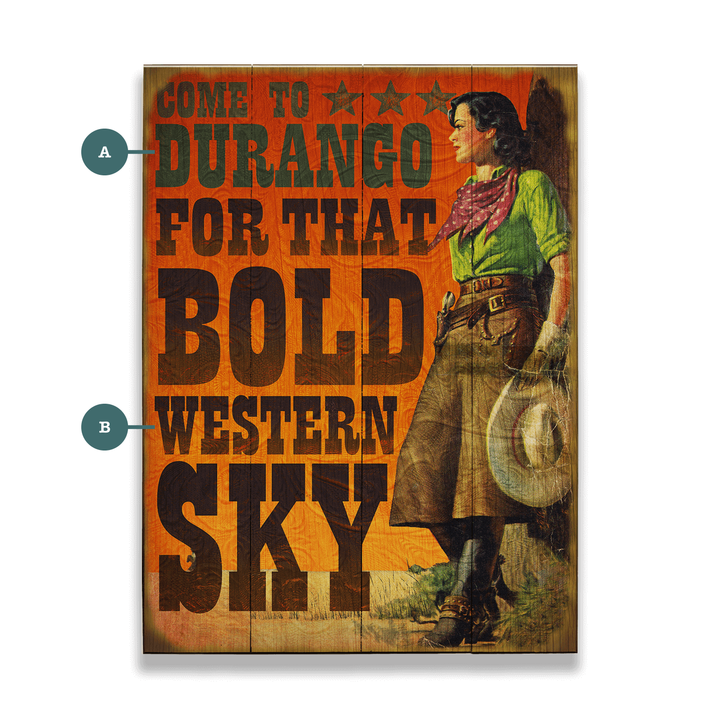 This artwork embodies the adventure and romance of the American West with a striking depiction of a confident cowgirl against a fiery sunset sky. The rich, warm tones and bold typography evoke the beauty and grandeur of open landscapes, inviting viewers to embrace the untamed frontier. The intricate textures and weathered design make it a perfect piece for western enthusiasts, ranchers, and those who appreciate the spirit and independence of cowboy culture. Ideal for rustic decor, rodeo-inspired spaces, or anyone looking to capture the essence of the wild, open range.