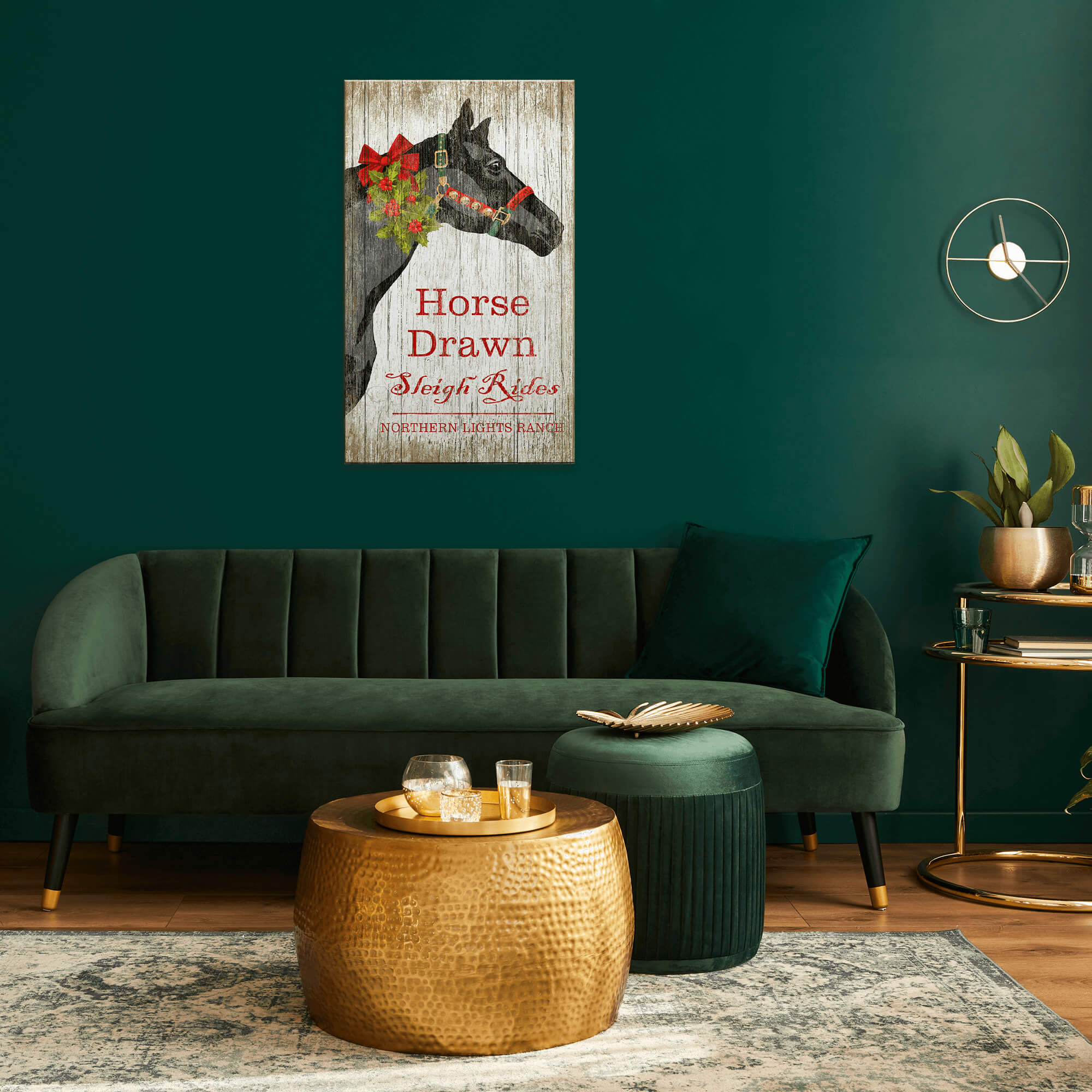 This festive artwork features a beautifully detailed horse adorned with holiday decorations, evoking the nostalgic charm of horse-drawn sleigh rides during the winter season. The rustic texture and classic holiday elements make this piece a perfect addition to seasonal decor, capturing the warmth and tradition of Christmas. Ideal for creating a cozy, welcoming atmosphere, this artwork brings the magic of a winter sleigh ride into any home, making it a great choice for holiday displays and farmhouse-style settings.