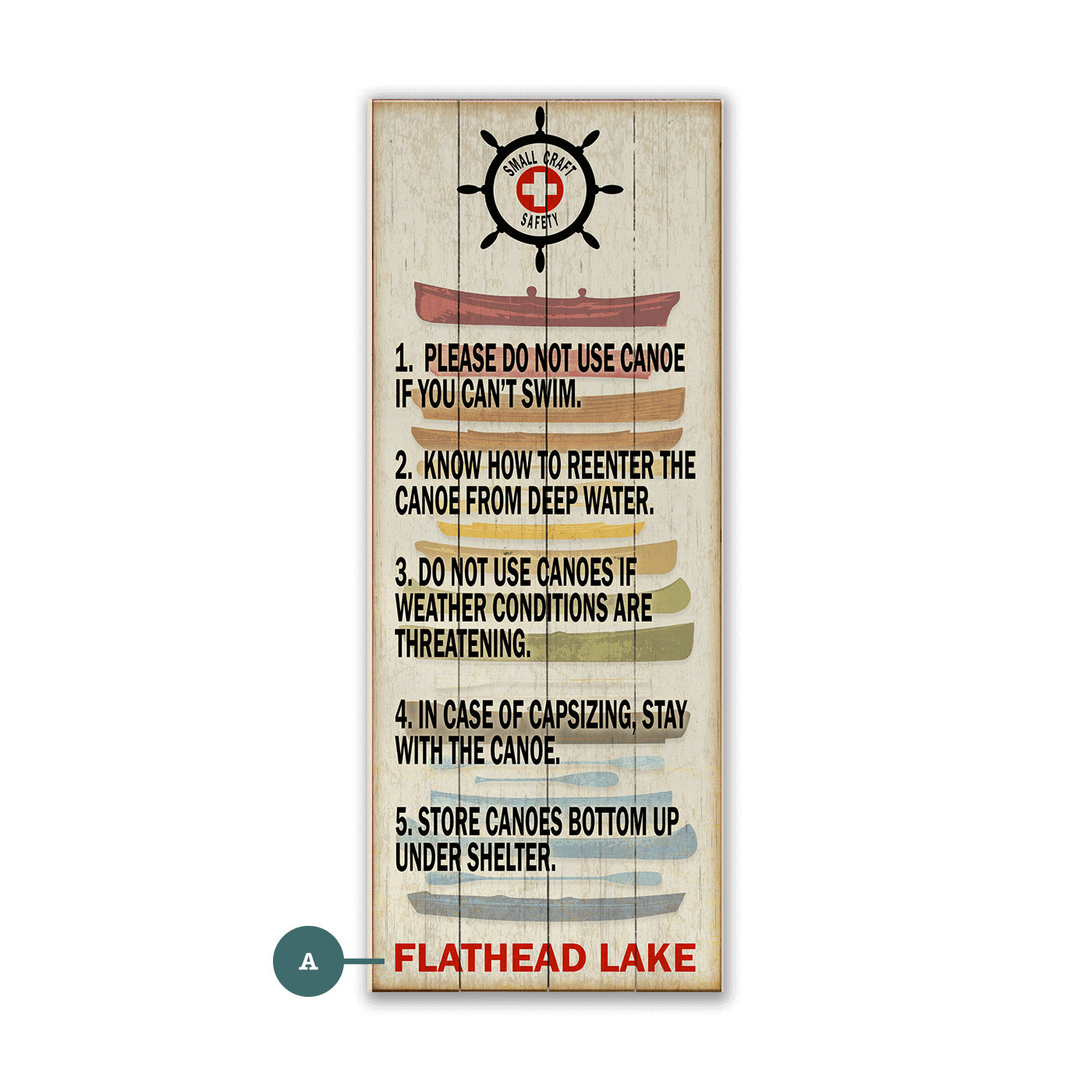 Promote safety with this informative and visually appealing small craft safety sign. Featuring essential canoeing safety tips, this artwork combines clear instructions with a charming vintage design. Perfect for boating areas, camps, or outdoor activity centers, this sign helps ensure a safe and enjoyable experience on the water. Add this piece to your space to enhance both safety and decor with a touch of retro charm.