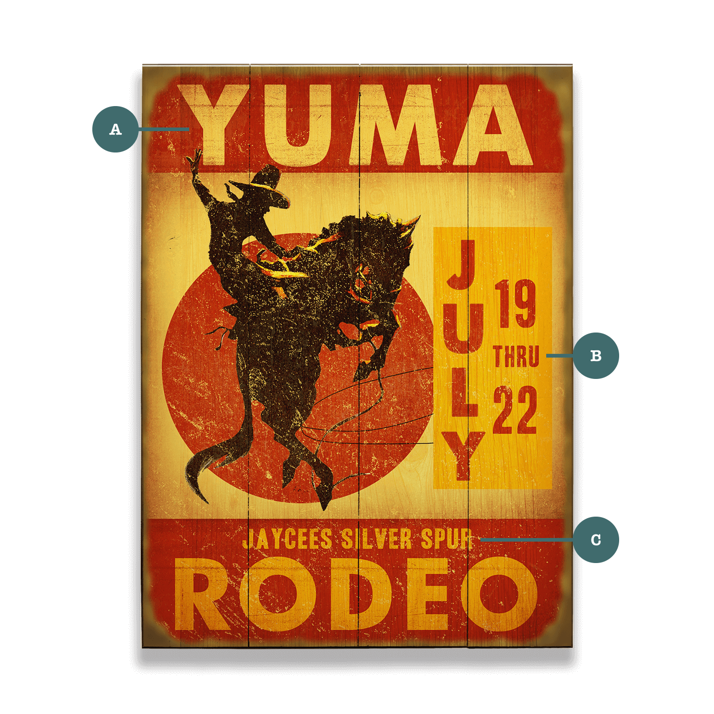 This bold and vintage-style rodeo artwork captures the thrilling action of bronc riding with a striking silhouette of a cowboy mid-ride against a deep red sun. The distressed textures, warm Western color palette, and classic typography evoke the nostalgia of traditional rodeo posters, making it a standout piece for any Western enthusiast. Celebrating the grit, skill, and excitement of rodeo culture, this artwork is perfect for fans of cowboy competitions, rustic décor, and the untamed spirit of the American West. Ideal for home, ranch, or rodeo event spaces, it brings the energy of the arena to life.