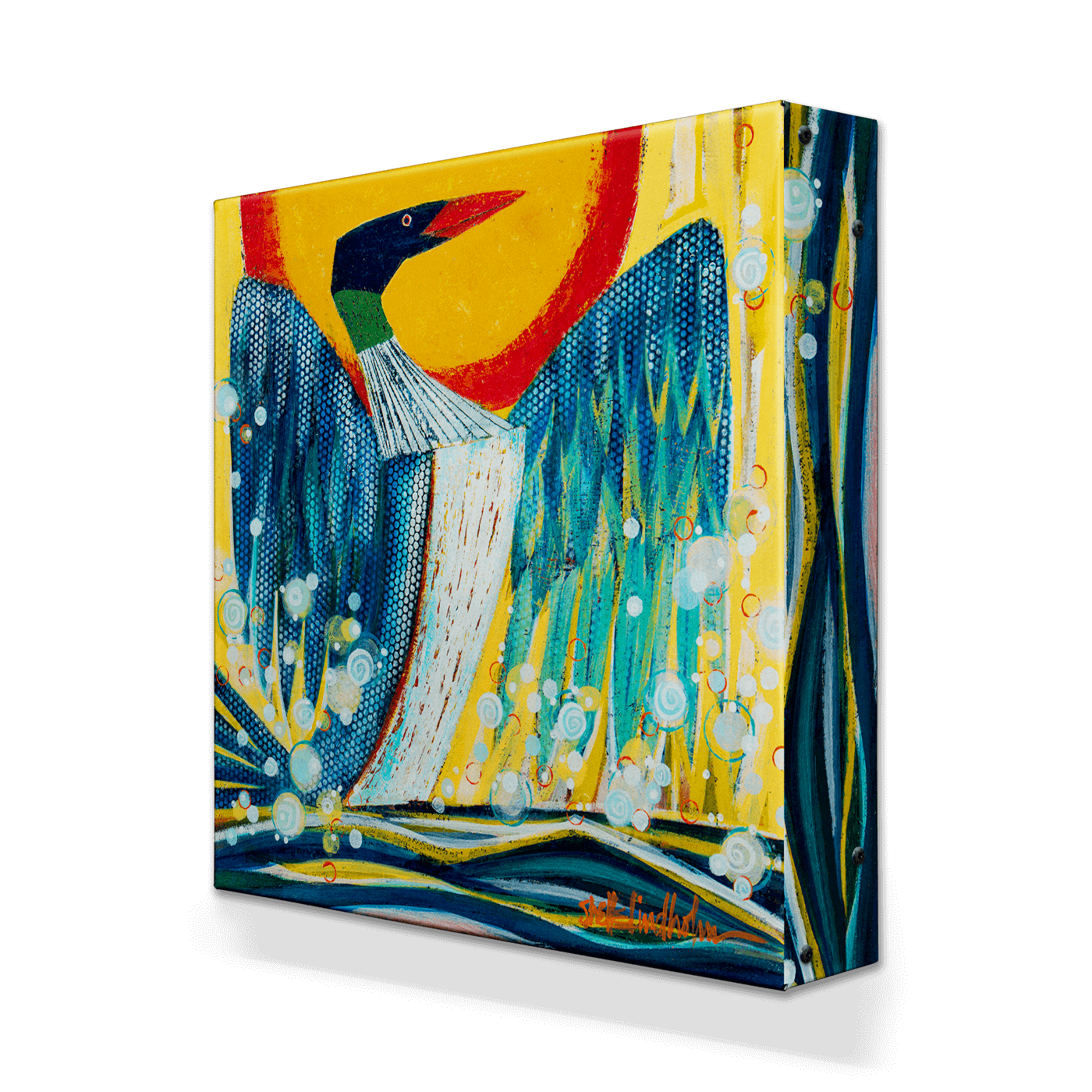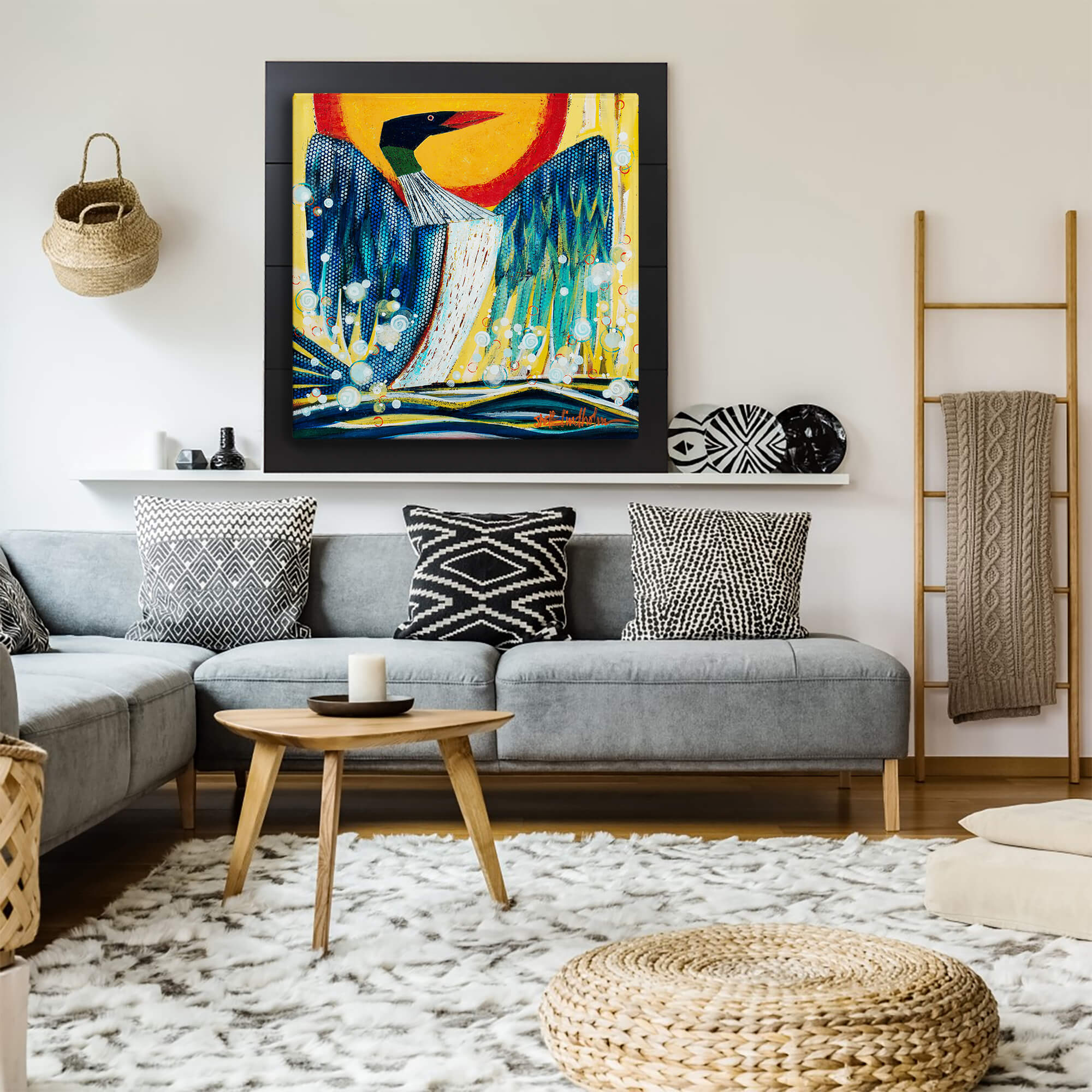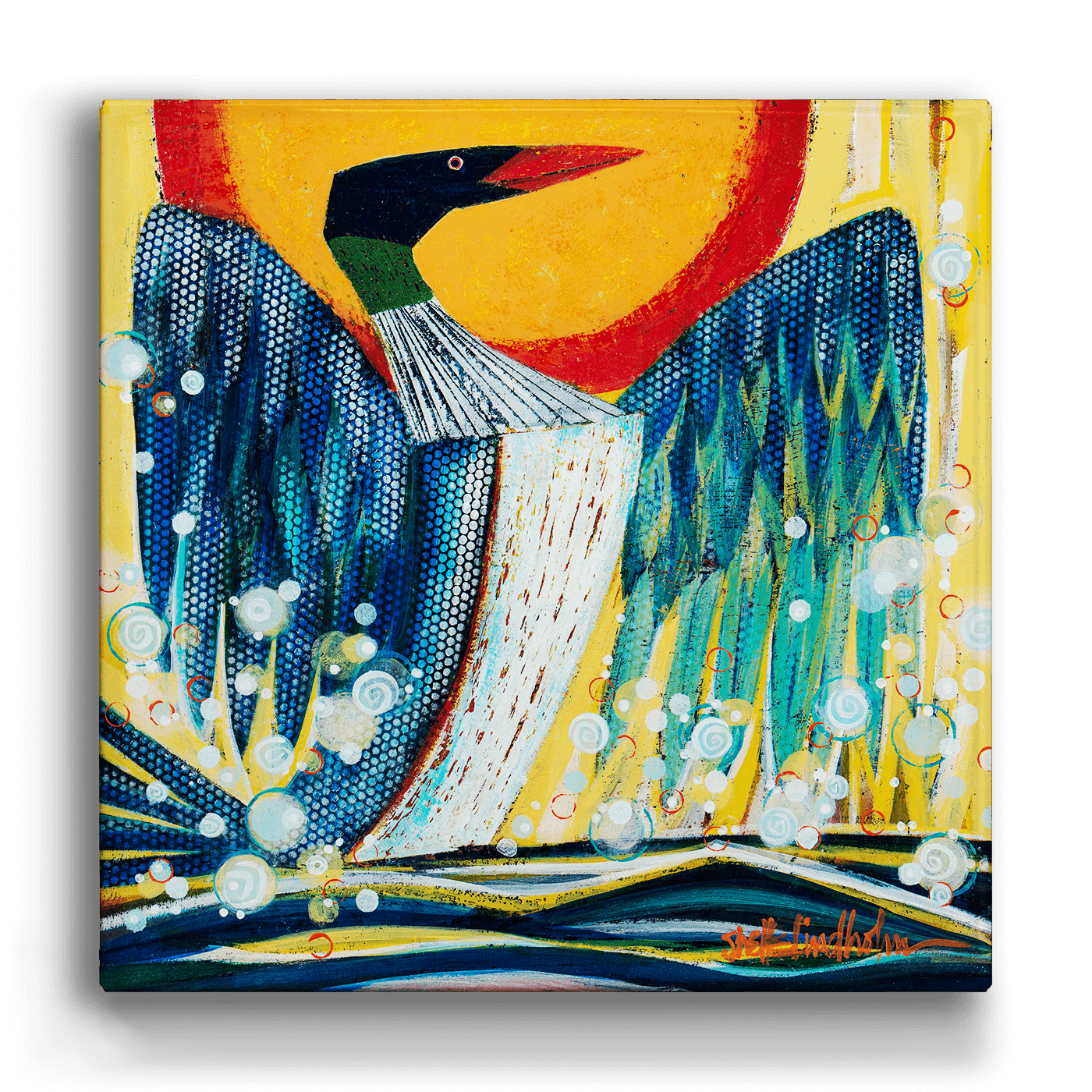 Elevate your space with Lady of the Lake, a striking artwork that reimagines the timeless elegance of the loon. With bold colors, intricate patterns, and a contemporary flair, this piece captures the spirit and majesty of this iconic water bird, earning its title as a true ‘Lady of the Lake.’ Perfect for nature lovers and art enthusiasts, this vibrant design is a captivating centerpiece for any home or office.