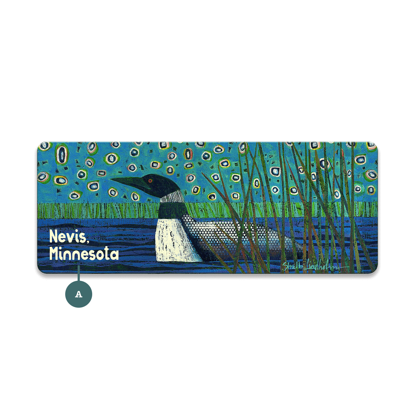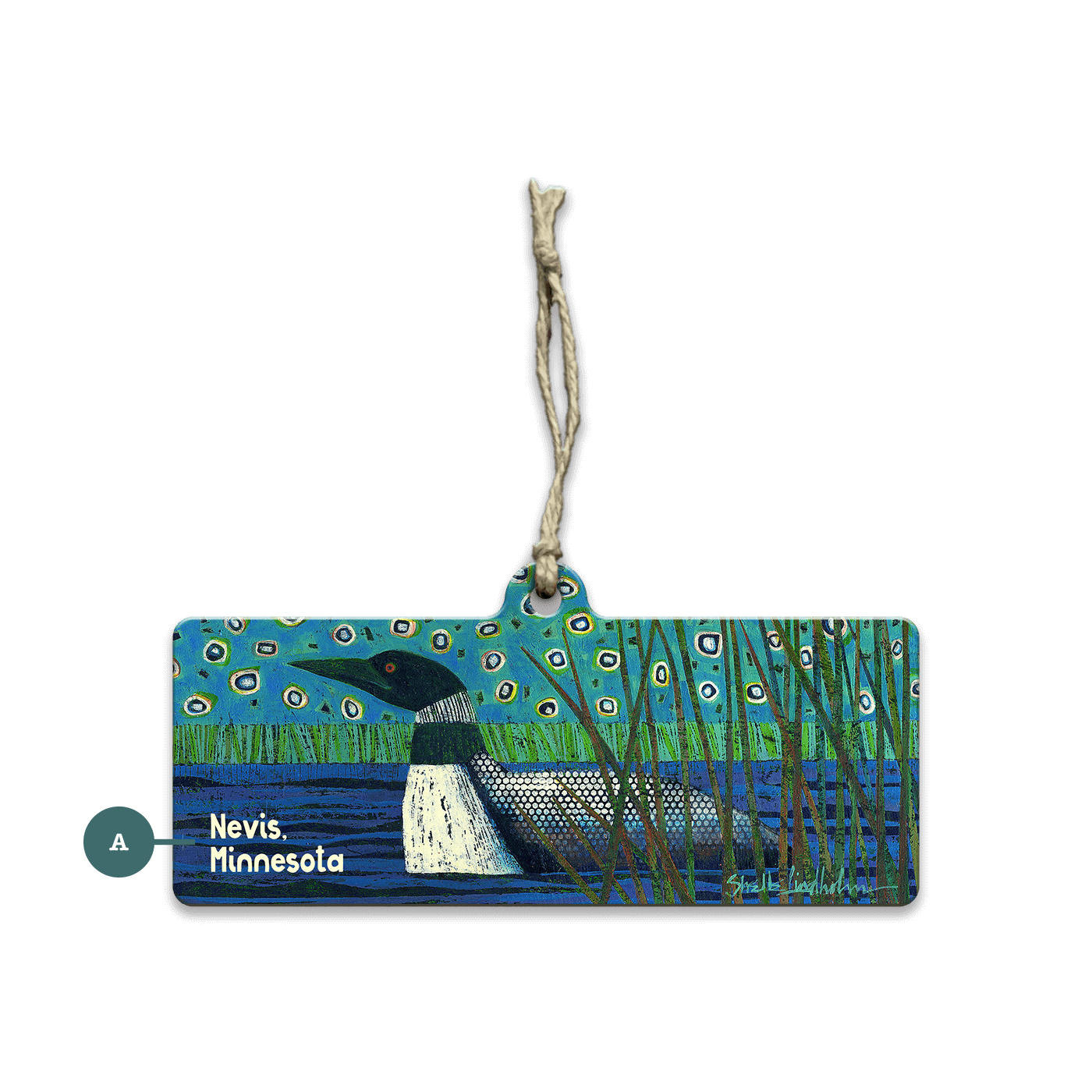 This captivating artwork features a serene loon gliding gracefully through still waters, framed by slender reeds and a strikingly patterned backdrop of blues and greens. The intricate textures and details of the loon's plumage portray the quiet elegance of this iconic bird. With its tranquil composition and dynamic interplay of natural elements, this piece beautifully captures the essence of lakeside serenity. Perfect for bird lovers and those seeking to bring a sense of calm and nature's beauty into their space.
