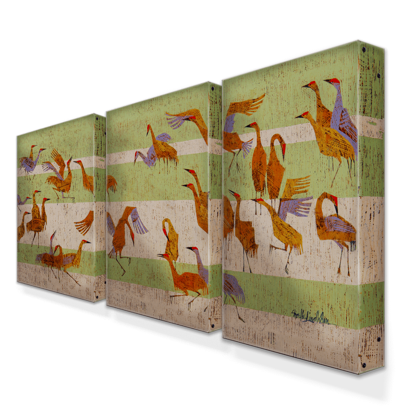 Return of the Sandhill Cranes: 3-Piece Metal Box Art