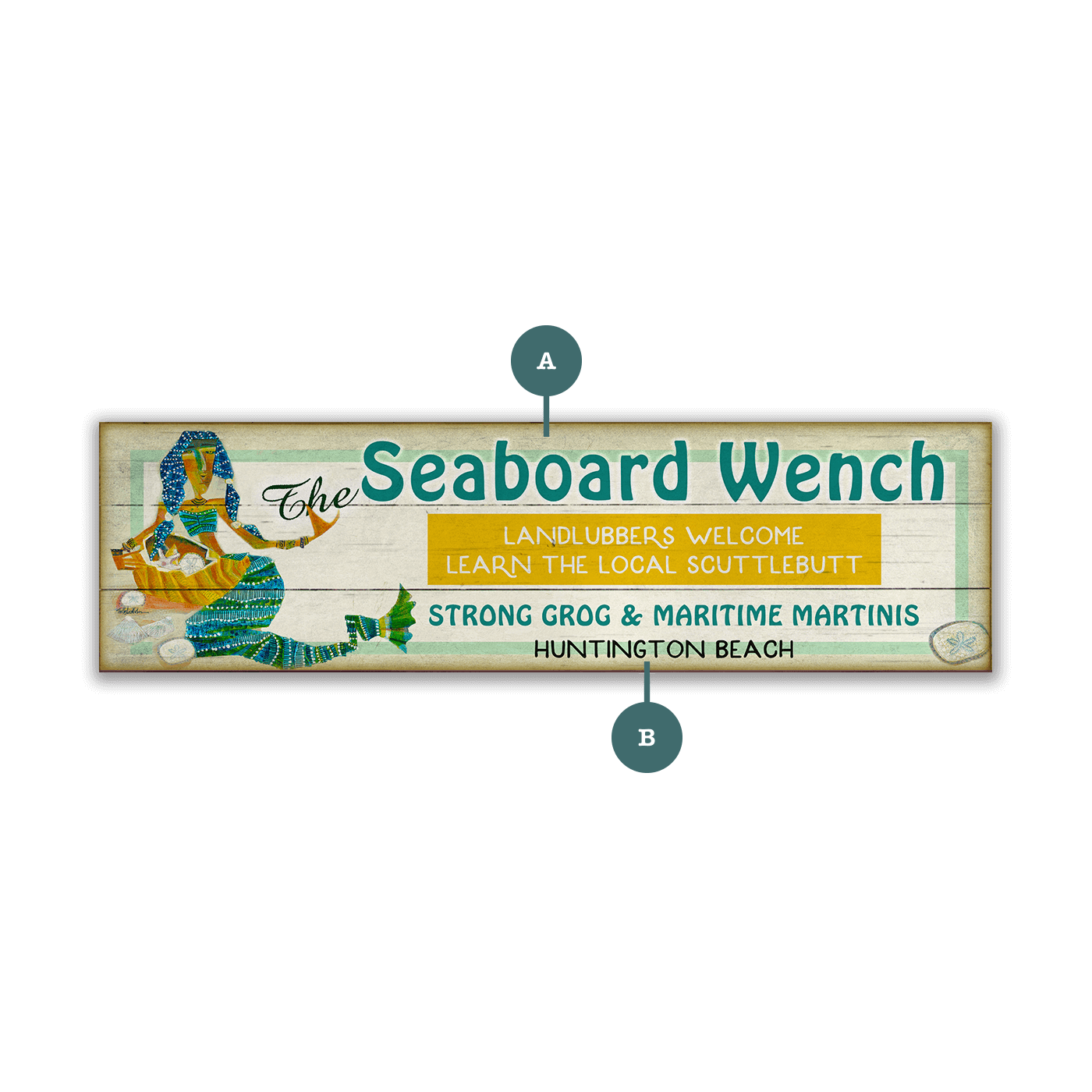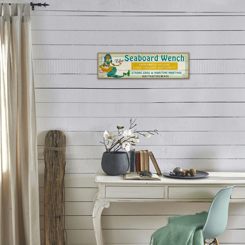 Bring the nautical charm and whimsical coastal energy of a seaside pub into your decor with this vibrant depiction of a mermaid surrounded by maritime-inspired details. The soft wood-textured background and harmonious mix of teal, gold, and earthy tones create a relaxed, inviting atmosphere. Perfect for a beachside eatery or echoing vacation vibes in any space, it’s a celebration of seaside adventures and the stories they inspire.