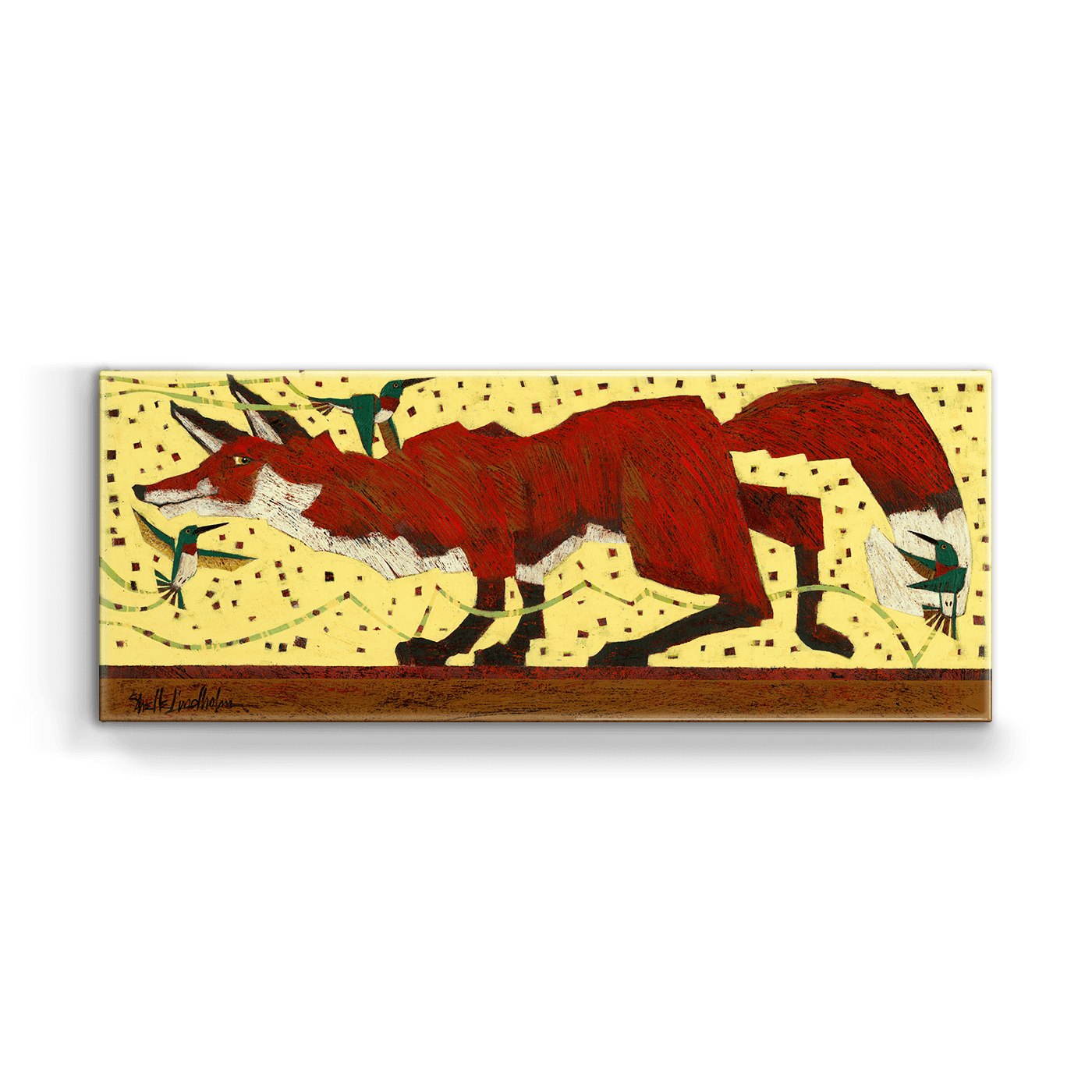 Add a touch of the wild to your space with Zoom Meeting, a vibrant artwork showcasing a sleek, stylized fox in motion, surrounded by delicate hummingbirds. With bold colors and dynamic patterns, this piece captures the energy and grace of nature’s most cunning predator. Perfect for wildlife enthusiasts and art lovers, this unique design brings life and movement to any room.