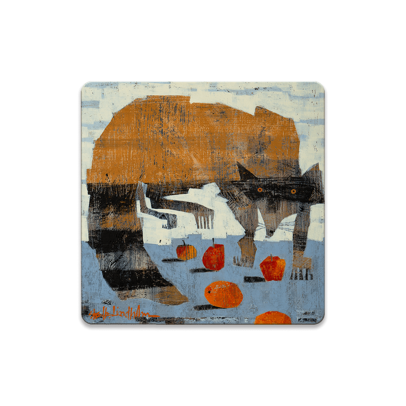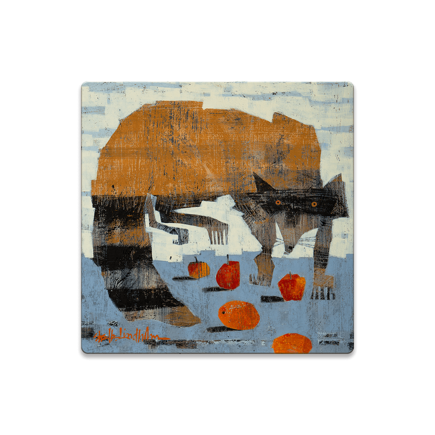 This captivating artwork features a bold, abstract depiction of a raccoon, guarding its treasured snacks of apples and oranges. The textured, modern style gives this piece a dynamic and playful energy, while the earthy tones highlight the raccoon's cautious stance and sharp gaze. Perfect for those who enjoy nature-themed art with a whimsical twist, this raccoon artwork adds character and creativity to any space. It's an excellent choice for art lovers who appreciate unique, contemporary interpretations of wildlife.
