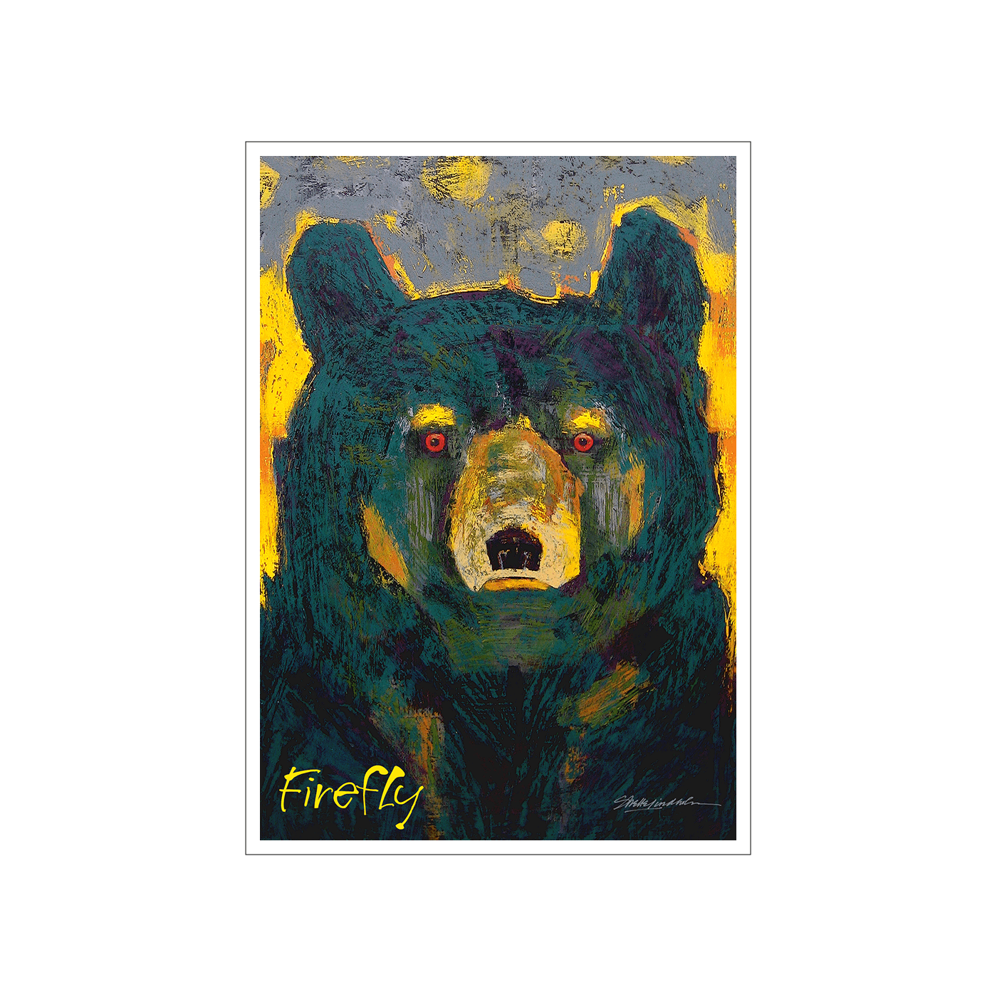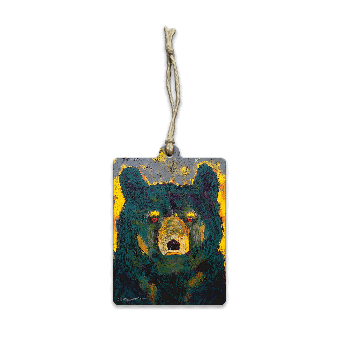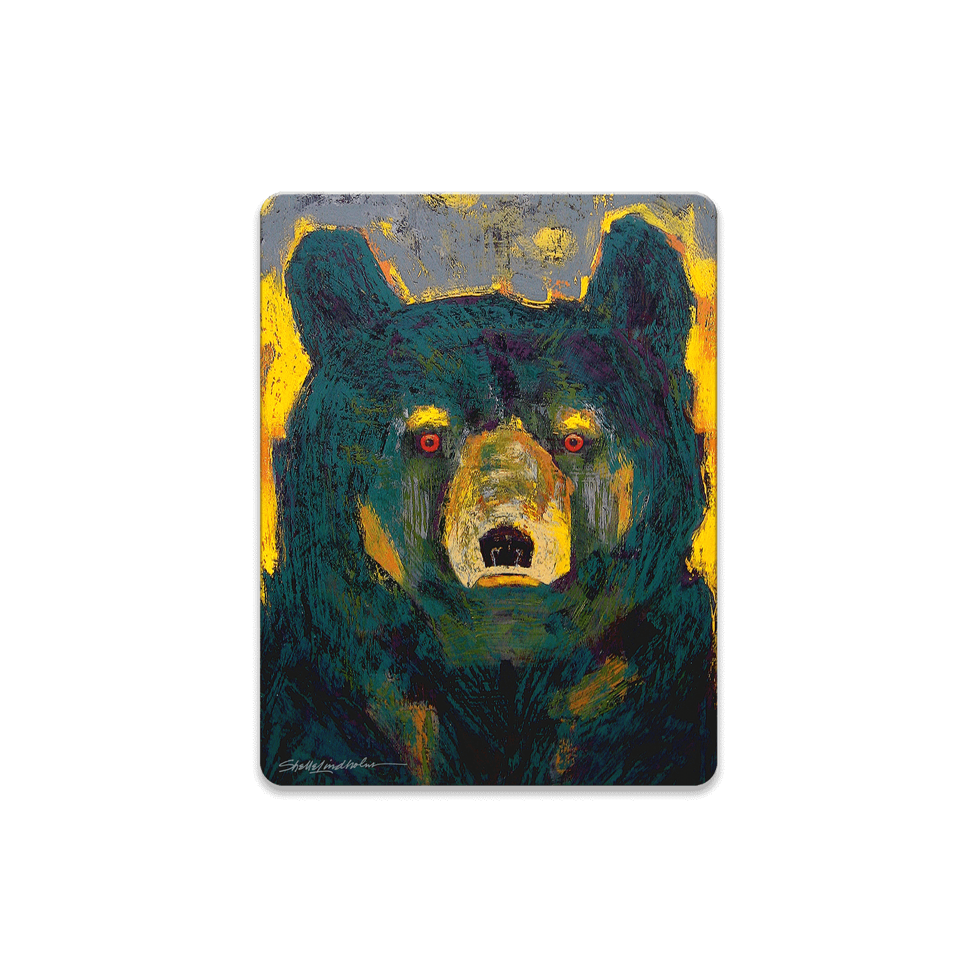 Explore the raw and powerful emotion captured in this striking bear portrait, where bold, dramatic hues and rugged textures create a haunting visual experience. The painting features a black bear with intense red eyes and a dark, moody palette, accented with bursts of yellow that seem to flicker like flames across the canvas. This piece is perfect for those who appreciate art that conveys deep emotions and the untamed spirit of nature, offering a compelling narrative and a dynamic aesthetic that will dominate any space it occupies.