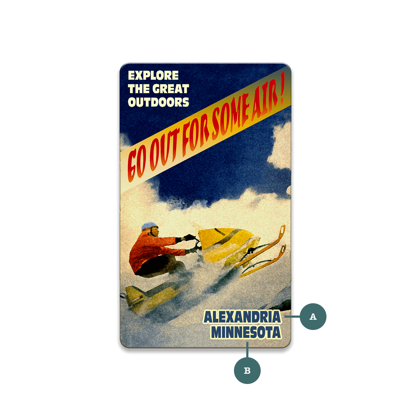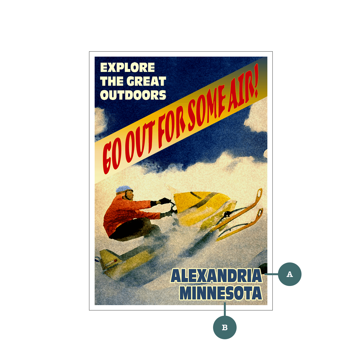 This bold artwork captures the excitement of wilderness exploration, featuring a snowmobiler in action, sailing airborne through a powdery cloud of snow. The dynamic design highlights the power and thrill of navigating through open, wintry landscapes. The strong lines and vibrant colors emphasize movement and adventure, inviting viewers to embrace the freedom of the great outdoors. Perfect for winter sports enthusiasts and lovers of adventure, this piece brings the essence of action and energy into any space.