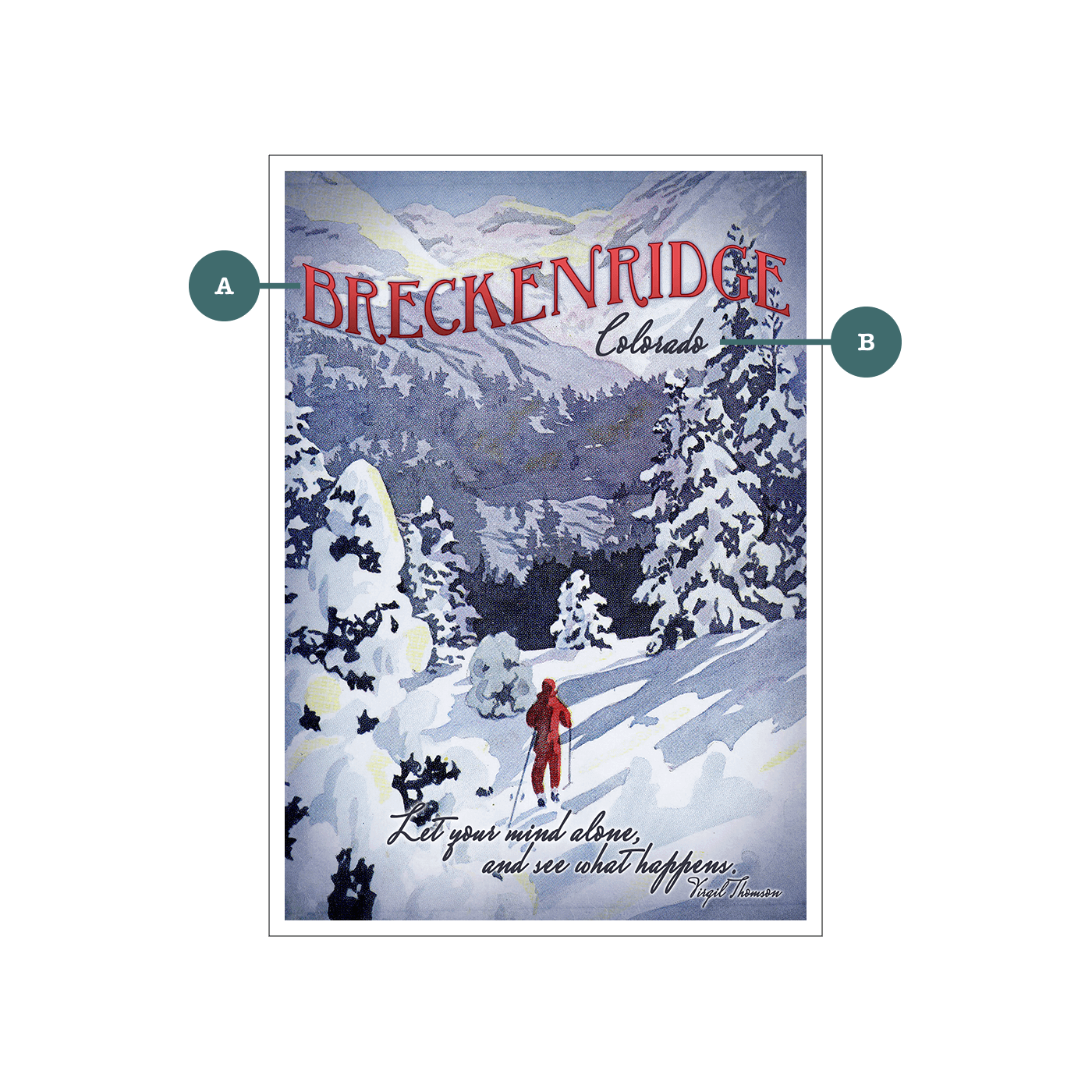 This stunning winter-themed artwork captures the serene beauty of a snow-covered mountain landscape. Featuring a skier in red gliding through a peaceful, snow-laden forest, the piece evokes a sense of adventure and tranquility. The soft, muted colors combined with the detailed illustration create a nostalgic, vintage feel, perfect for lovers of outdoor recreation and winter sports. The artwork’s weathered, retro design adds a timeless charm, making it ideal for decorating spaces with a rustic or alpine theme.