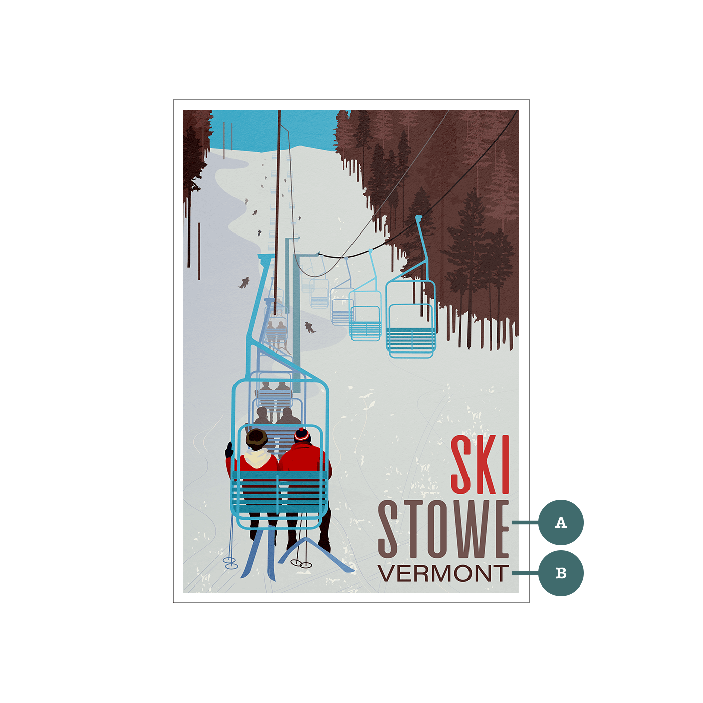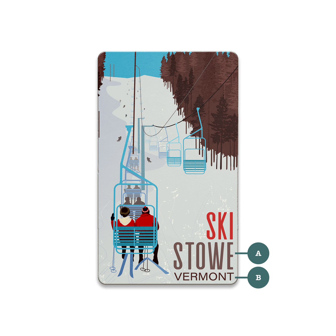 Capture the magic of the slopes with this stylish ski-lift artwork, featuring a pair of bundled-up skiers riding high above a wintry mountain run. Clean lines, cool tones, and modern vintage design create a striking contrast between the white snow, blue sky, and dense evergreens. The composition evokes the quiet anticipation before a great downhill run—perfect for ski lodges, winter cabins, or any space that celebrates alpine adventure and snowy escapes.
