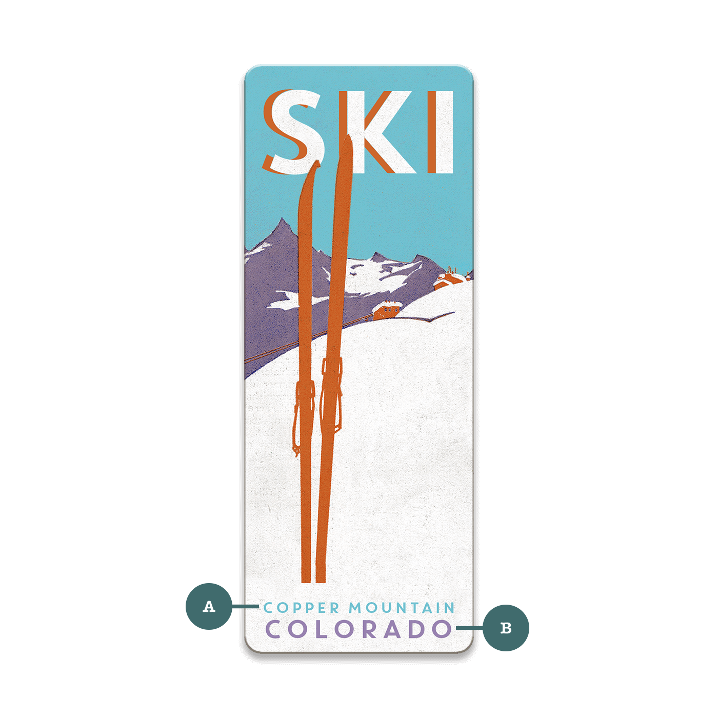 This retro-inspired ski artwork captures the essence of winter adventure with a minimalist design featuring a pair of vintage skis against a snowy mountain backdrop. The bold, clean lines and vibrant colors evoke a sense of excitement and nostalgia, making it a perfect piece for ski enthusiasts and lovers of outdoor winter sports. The weathered, rustic look adds a timeless charm, ideal for enhancing any space with a touch of alpine flair.