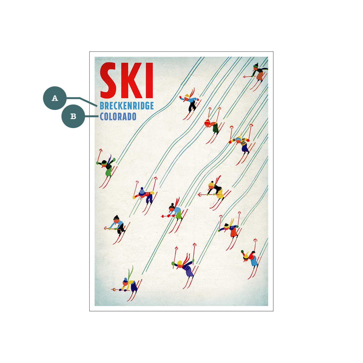 Experience the thrill of the slopes with our 'Race to the Bottom' wall art. Featuring an array of skiers in mid-descent, artistically rendered against a stylized background, this artwork brings the spirit of winter sports to life. Perfect for decorating a cabin, ski lodge, or the home of any winter sports enthusiast, this piece adds a touch of alpine adventure to any space.