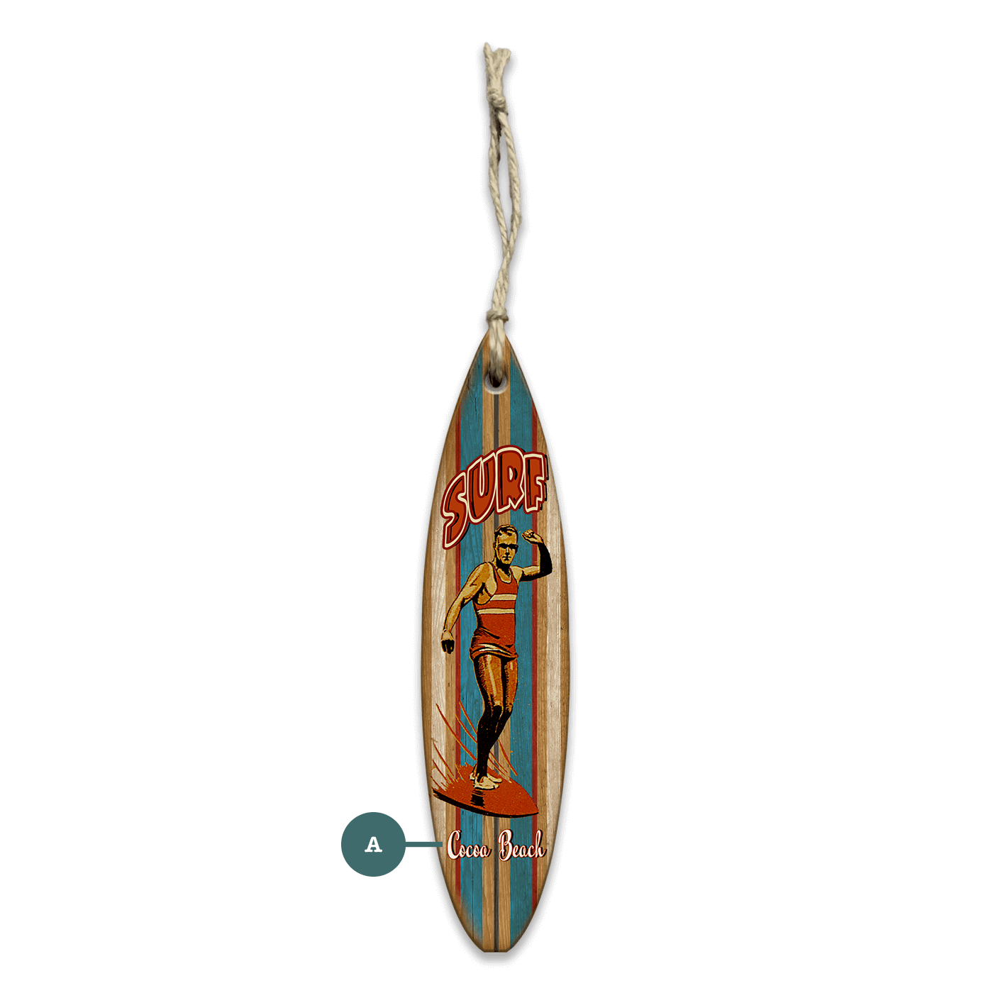 Capture the essence of the surfing legacy with this classic surfboard artwork. The piece features a bold depiction of a surfer in action, showcasing his skill and balance. The vintage-inspired design, set against a rustic wooden backdrop with stripes of muted colors, evokes the nostalgia of early surfing culture. This artwork is a celebration of the enduring spirit and excitement of surfing, making it a perfect addition to any space that values adventure and the timeless appeal of the ocean waves.