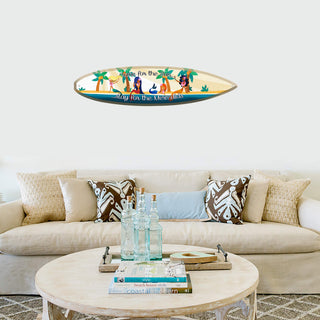 Dive into this colorful surfboard artwork, "Come for the Sun, Stay for the Mermaids." This piece captures the vibrant spirit of Key West, Florida, featuring a charming lineup of mermaids under swaying palm trees. It's a playful homage to the island's sunny skies and mythical seaside lore. Perfect for anyone who adores the whimsical side of beach life or wants to bring a bit of Key West's magical charm into their home.