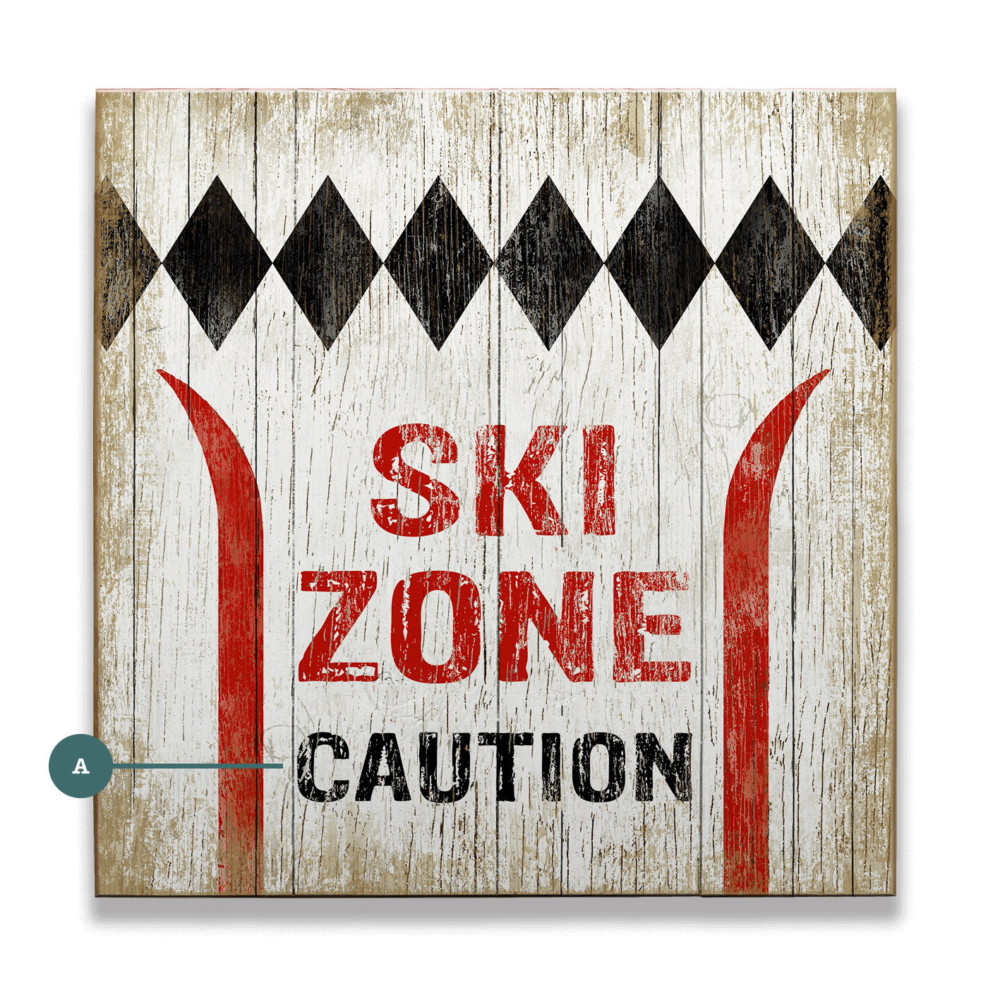This rustic-style artwork captures the essence of ski culture with a bold "Ski Zone Caution" message. The vintage design features distressed textures and eye-catching red skis, adding character to any winter-themed decor. Perfect for ski lodges, mountain cabins, or homes that embrace the winter sports spirit, this sign brings a fun yet cautionary vibe, making it ideal for ski enthusiasts or anyone who loves the mountains. Its rugged look and vibrant accents make it a standout piece for those who appreciate both adventure and style.