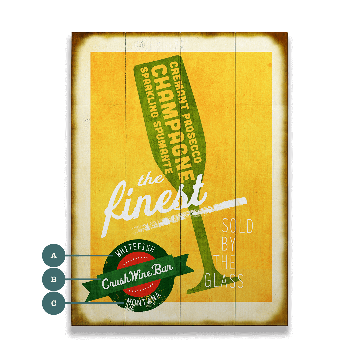 This artwork is part of a series showcasing the finest beverages, from wines to cocktails, each featuring a customizable trademark that adds a personal touch to these stylish prints. Ideal for collection or thematic decoration in hospitality settings.