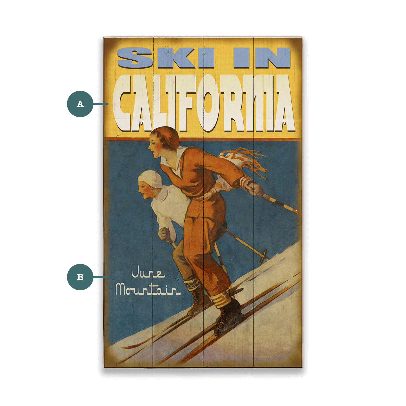 Loyd, who had been dabbling in cartooning and surfing, was encouraged to take an art class taught by Eric Titlebaum, a cartoonist of Playboy Magazine notoriety. With time to tinker during the desolate winters, Laura began asking Loyd to create merchandise for their shop. Recognizing the untapped potential of the skiing crowd, they started designing and producing unique wood and metal signs inspired by vintage ephemera.