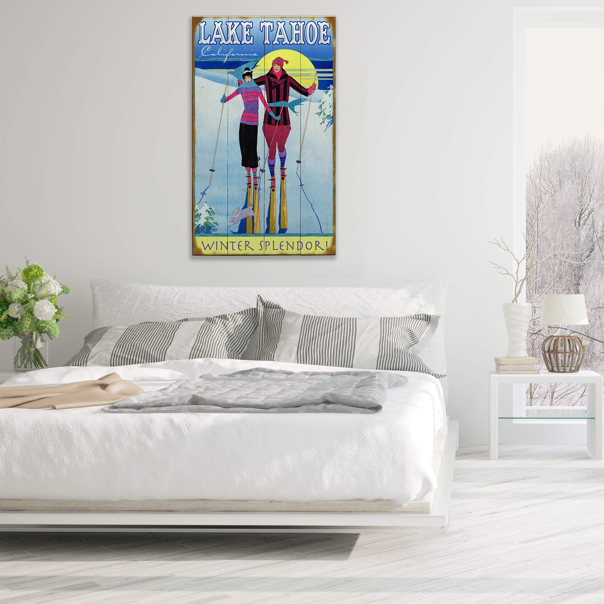 Embrace the beauty of winter with this charming, vintage-style ski poster. Featuring two stylish skiers enjoying a picturesque day on the slopes, this artwork captures the elegance and adventure of the winter season. The vibrant colors and retro design make it a perfect addition to any winter-themed décor, adding a nostalgic touch to your home or cabin.