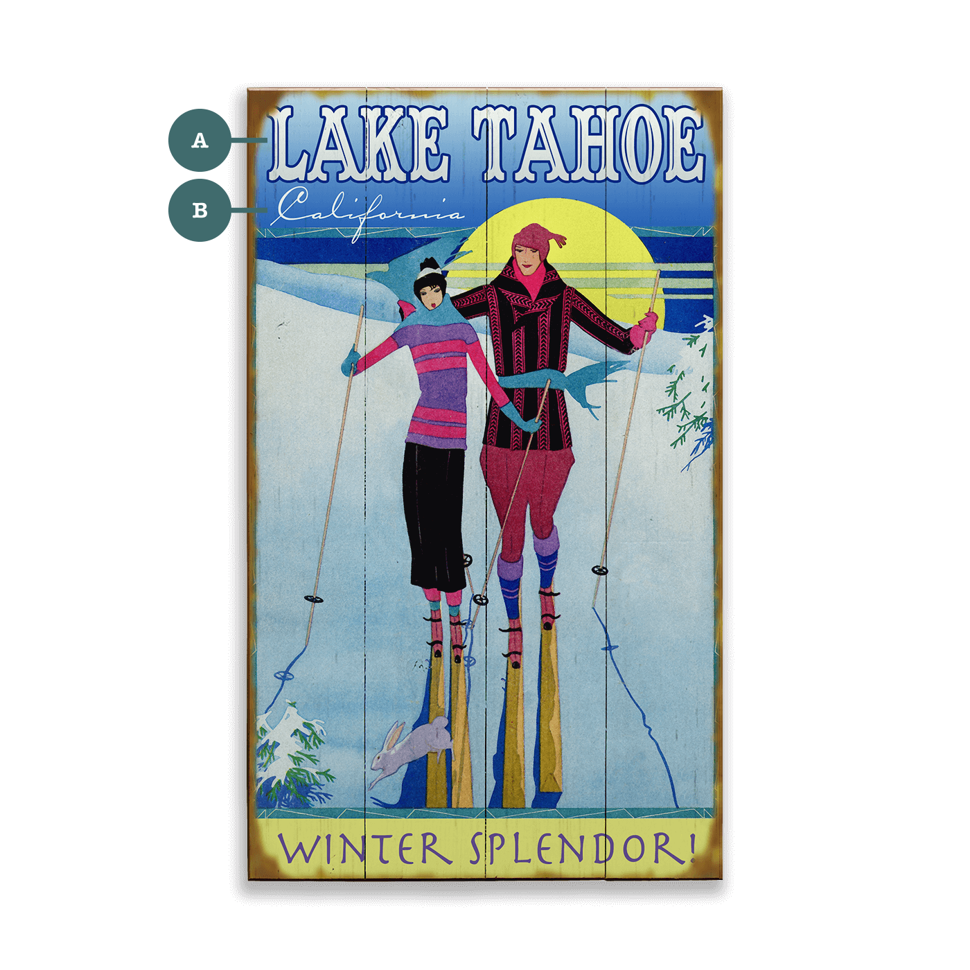 Loyd, who had been dabbling in cartooning and surfing, was encouraged to take an art class taught by Eric Titlebaum, a cartoonist of Playboy Magazine notoriety. With time to tinker during the desolate winters, Laura began asking Loyd to create merchandise for their shop. Recognizing the untapped potential of the skiing crowd, they started designing and producing unique wood and metal signs inspired by vintage ephemera.