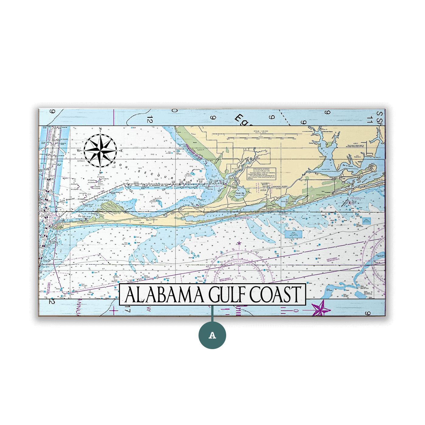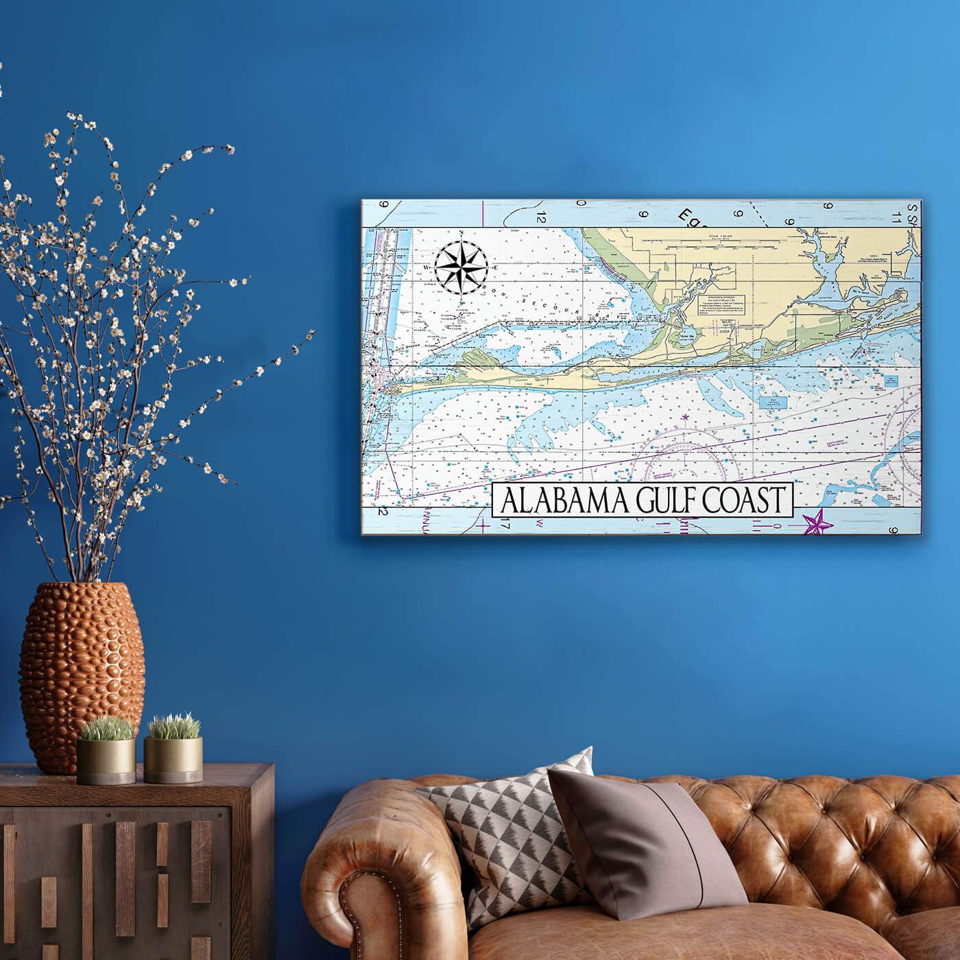 Alabama Gulf Coast Area Chart - Wood & Metal Wall Art