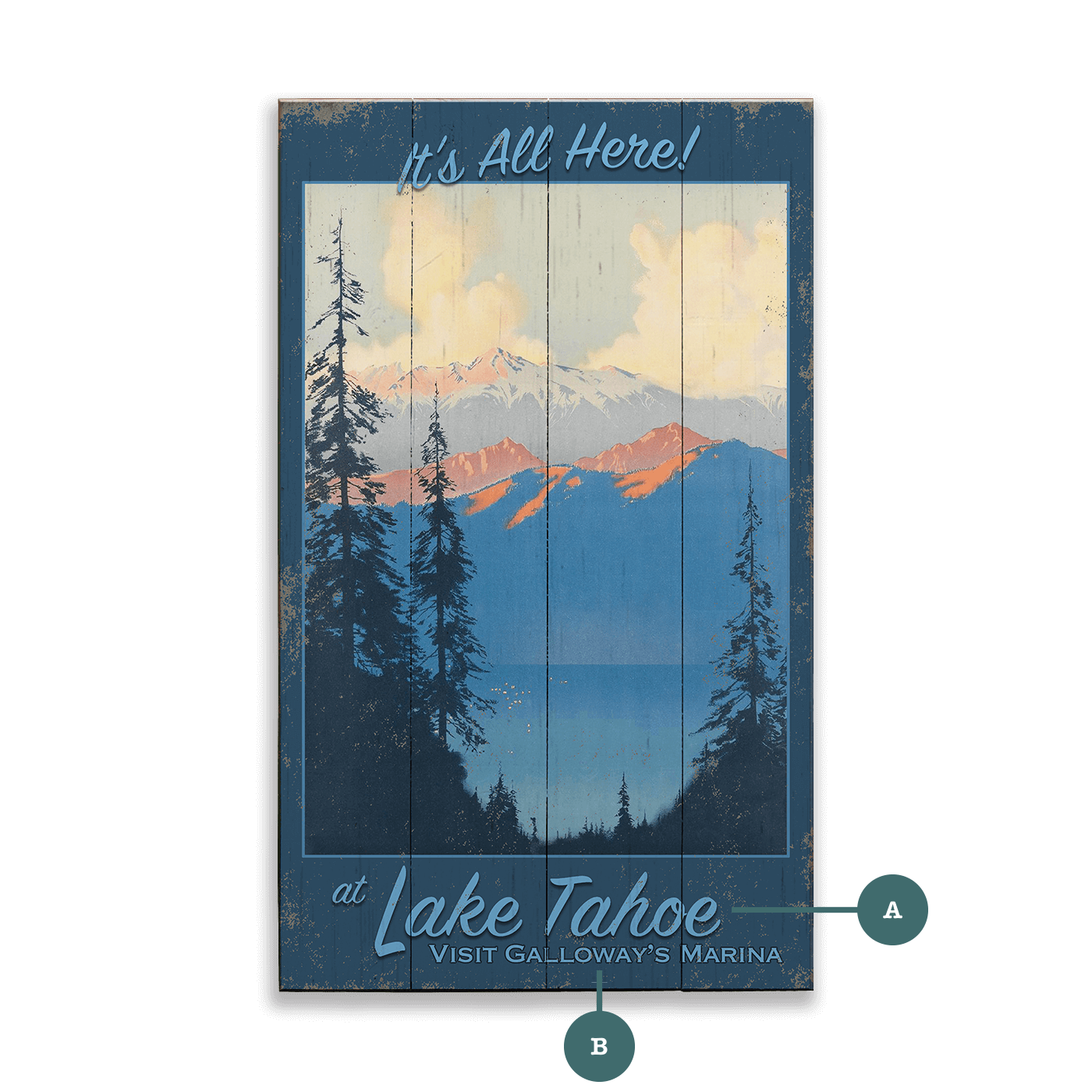 Enjoy complimentary personalization for this piece, meticulously handcrafted by our graphic design team. Specify your desired text for points A and B. To ensure perfection in your custom piece, please verify your text carefully. Missing personalization information will revert to our default design as shown. To remove all text from a field, type "Remove" in that field.