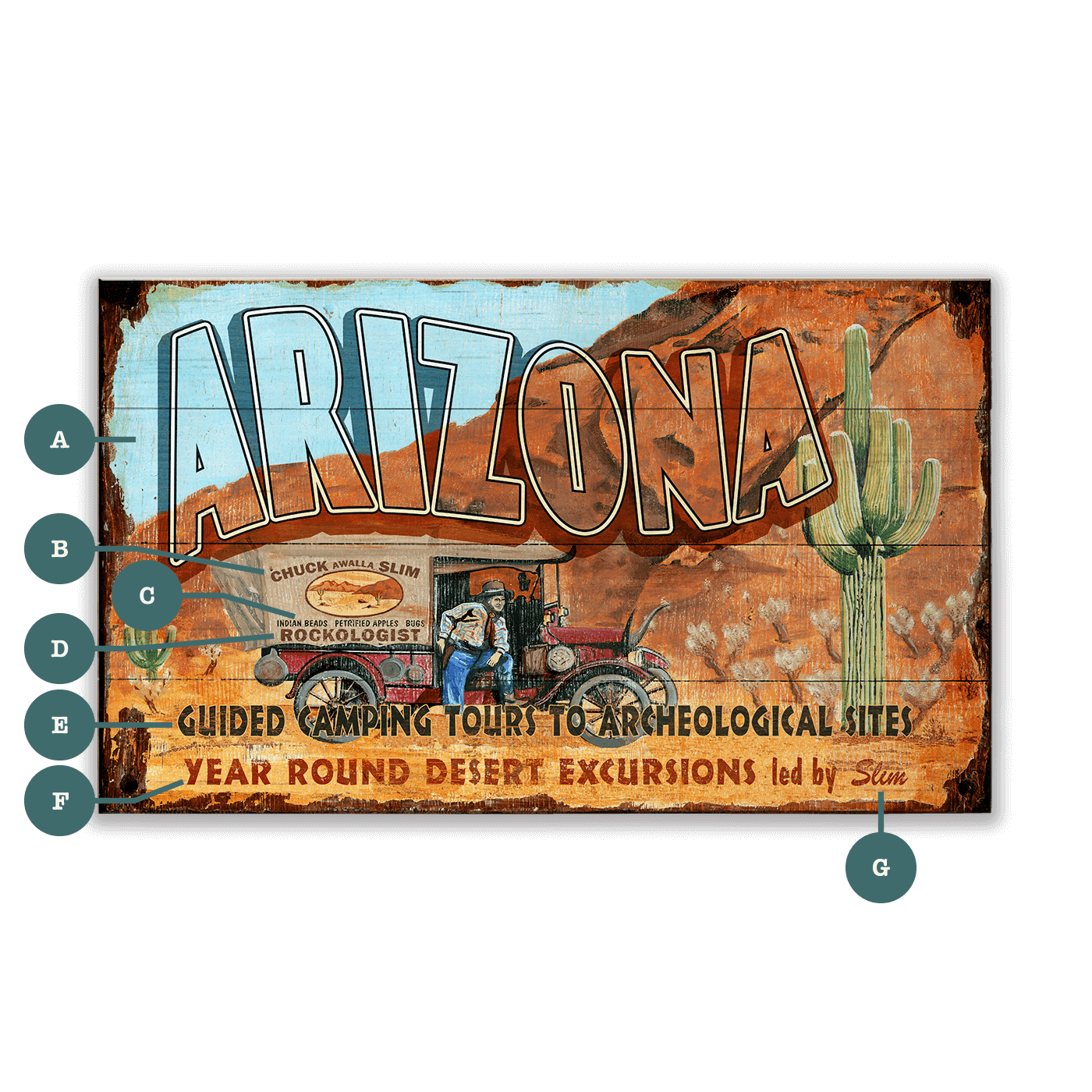Enjoy complimentary personalization for this piece, meticulously handcrafted by our graphic design team. Specify your desired text for points A, B, C, D, and E. To ensure perfection in your custom piece, please verify your text carefully. Missing personalization information will revert to our default design as shown. To remove all text from a field, type "Remove" in that field.