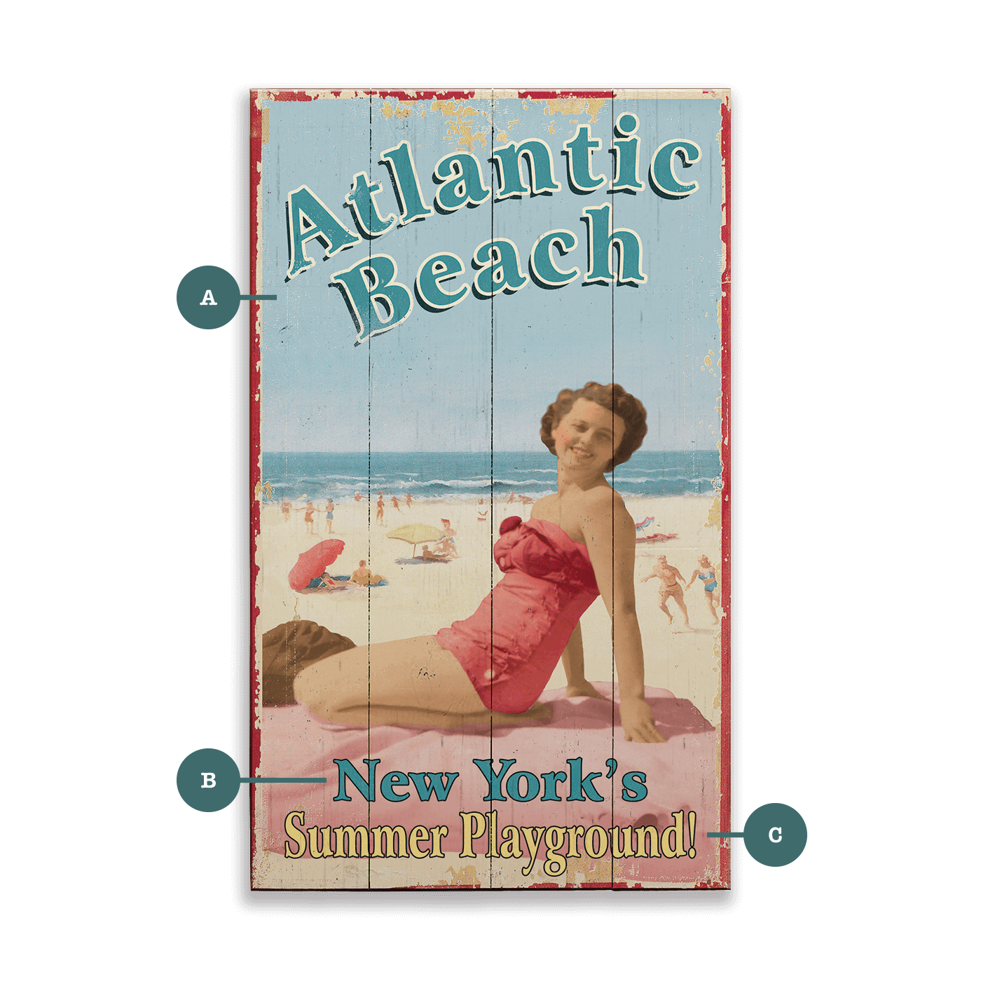 This vintage beach-themed sign captures the carefree spirit of summer fun by the shore. With retro colors, a nostalgic beach scene, and a playful slogan, it’s perfect for adding a touch of seaside charm to your space. Ideal for beach cottages, patios, or any coastal-inspired room, this artwork brings the warmth of summer days into your décor. Custom text options are available, making it a unique piece for your collection.