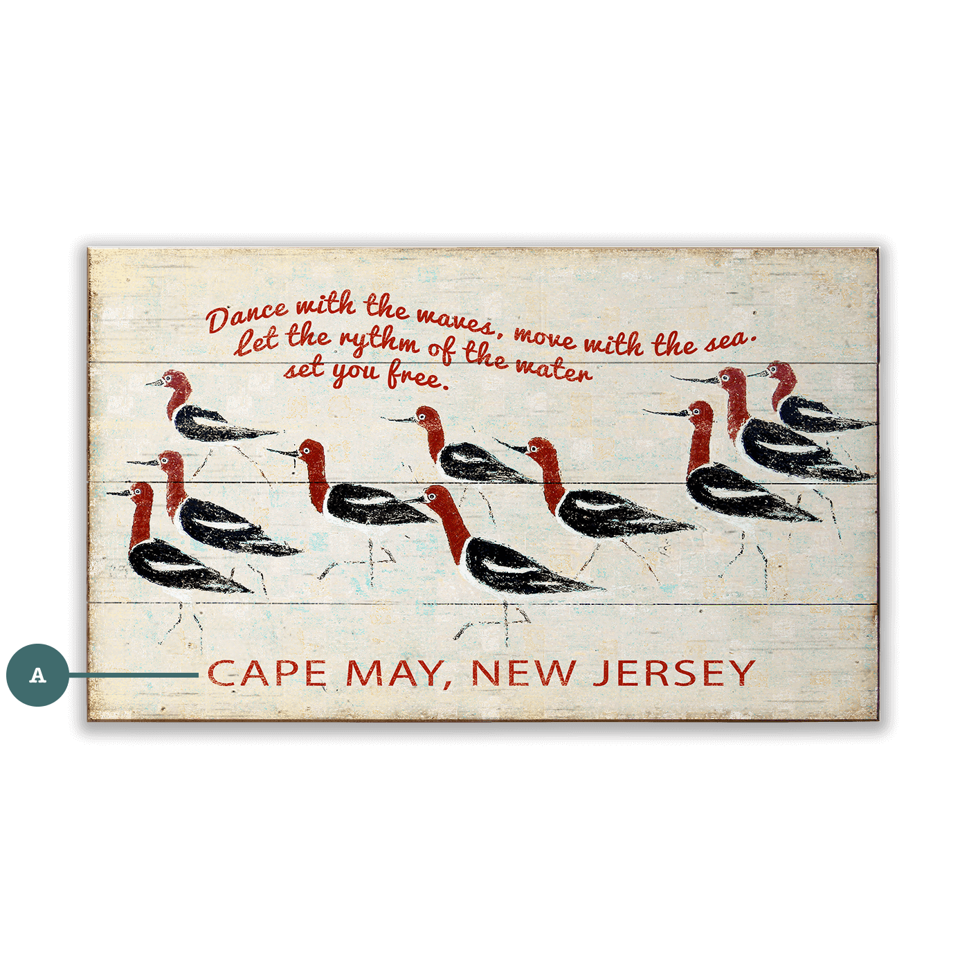 This charming artwork features a flock of shorebirds along with an uplifting message: "Dance with the waves, move with the sea. Let the rhythm of the water set you free." With a vintage-inspired design, the piece highlights the beauty and serenity of a secluded beach, making it the perfect addition to coastal-themed decor. Whether you're a fan of seaside escapes or looking to add a calming, oceanic touch to your space, this artwork brings the spirit of the shore to life.