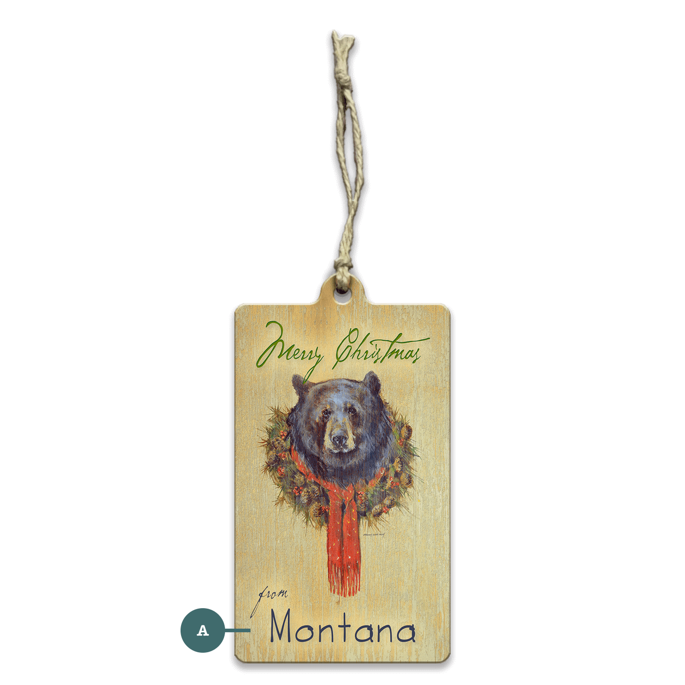 Bring the spirit of a cozy, rustic Christmas to your home with this delightful bear-themed artwork! Featuring a friendly bear adorned with a festive wreath and a bright red scarf, this piece captures the essence of a whimsical winter. It's a heartwarming addition to any holiday decoration scheme, imbued with the charm of woodland life. With the ability to customize the text, this art becomes a personal greeting from your family to all who gather around.