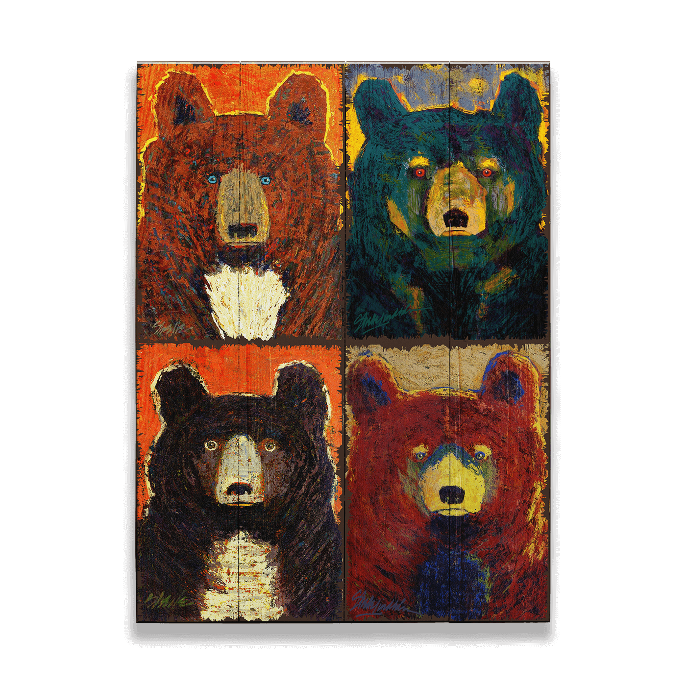 Bear Necessities: Colors of the Wild Tetraptych - Wood Plank Wall Art