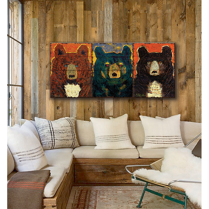 Bear Necessities: Colors of the Wild Triptych - Wood Plank Wall Art