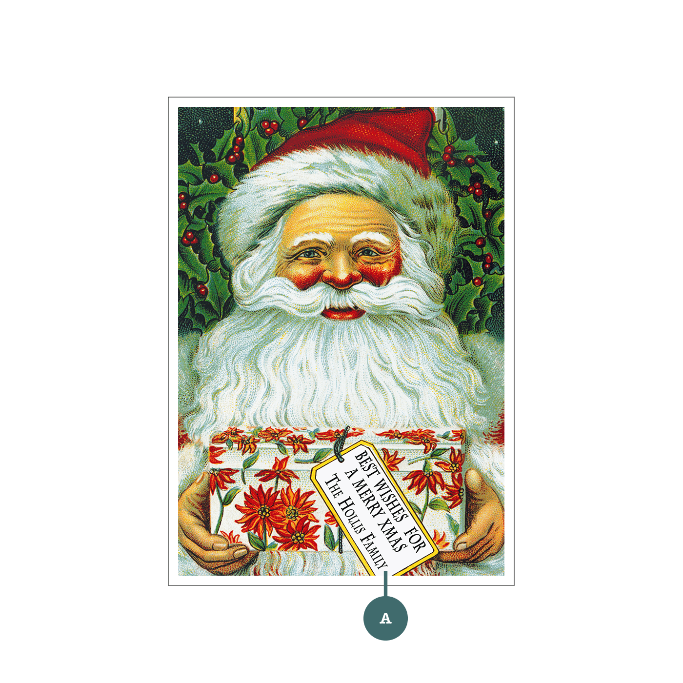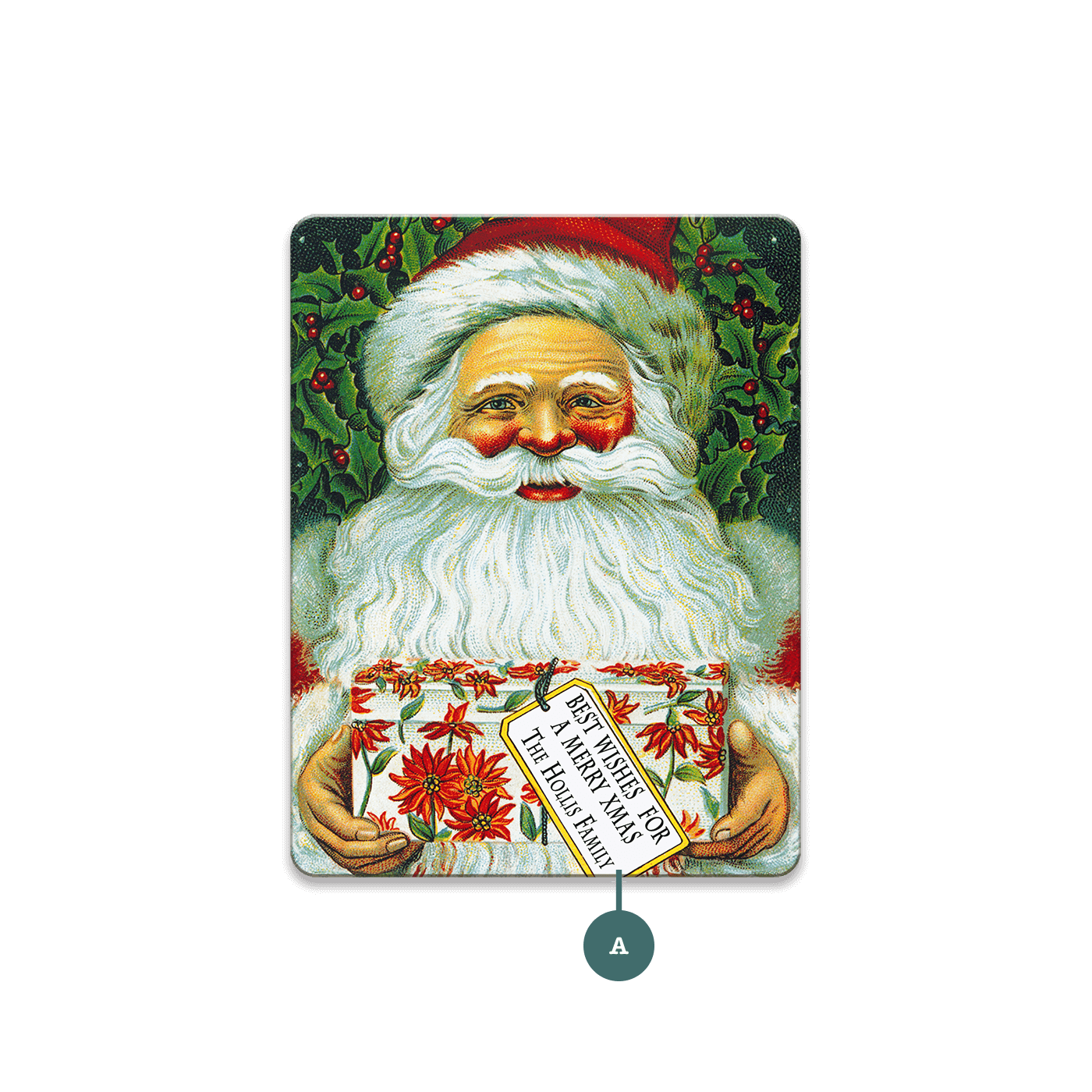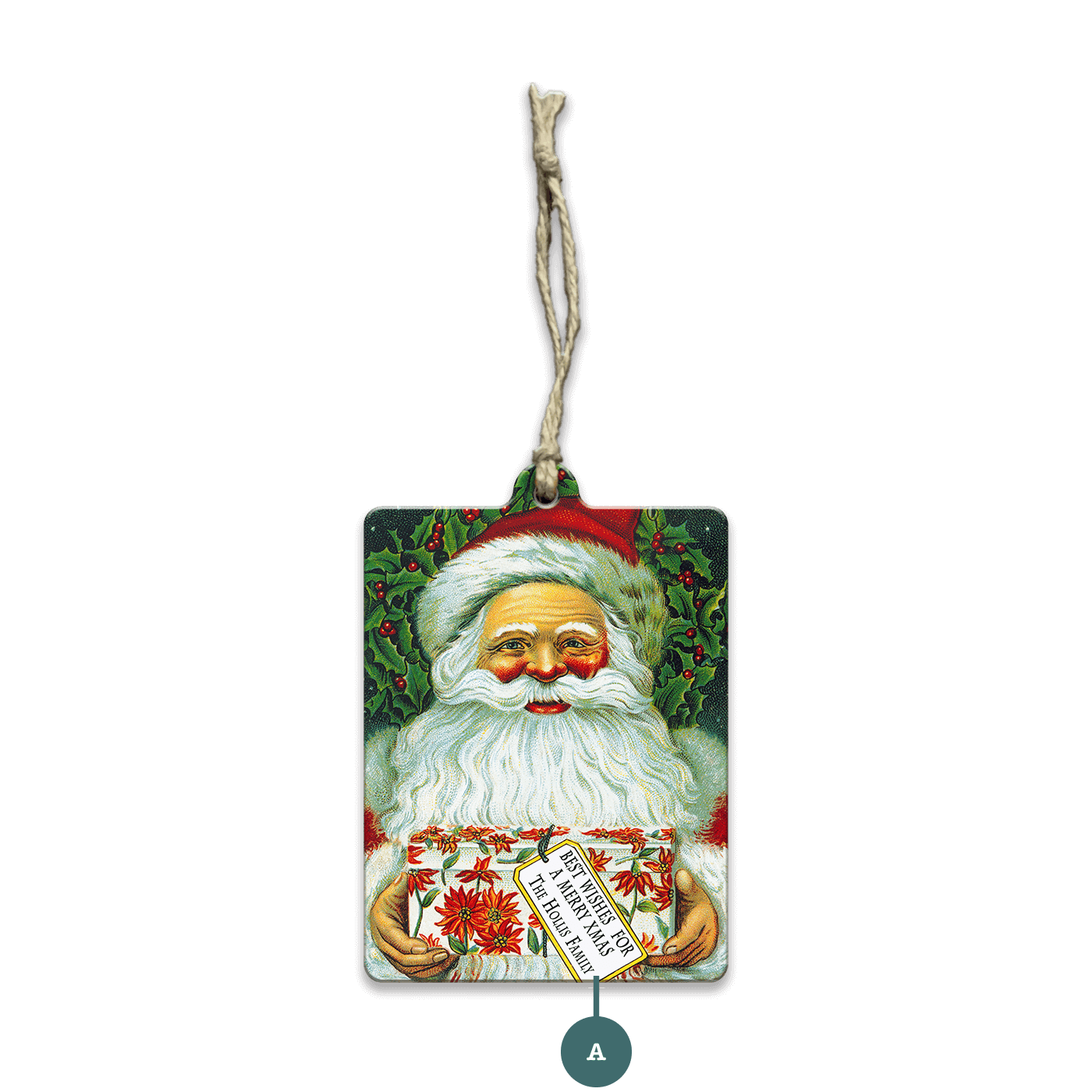 This nostalgic holiday sign brings the magic of a vintage Christmas greeting to life. Featuring a classic image of a rosy-cheeked Santa Claus holding a poinsettia-print gift box, the design is rich with festive color and cheerful detail. Holly leaves and berries fill the background, adding timeless charm to the composition. Perfect for seasonal decor, this piece captures the warmth, generosity, and joy that make the holidays so special—ideal for entryways, kitchens, or cozy nooks where the spirit of the season shines bright.