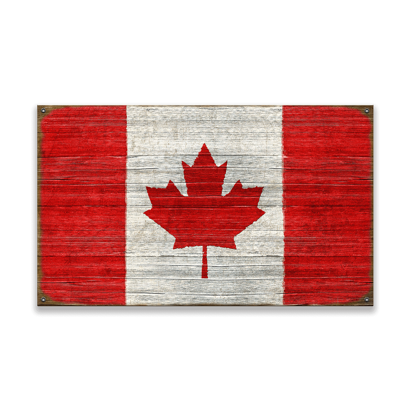 This piece showcases the Canadian flag in a vintage style, set against a rugged, distressed background that lends a rustic and historic character to the iconic red and white colors and the central maple leaf symbol. The artwork evokes a sense of pride and tradition, perfect for those who hold a deep appreciation for Canadian heritage. The textured, weathered finish enhances the visual appeal, making it an ideal decorative item for homes, offices, or public spaces where a patriotic touch is desired. It's a striking way to celebrate Canada's spirit and history in any setting.