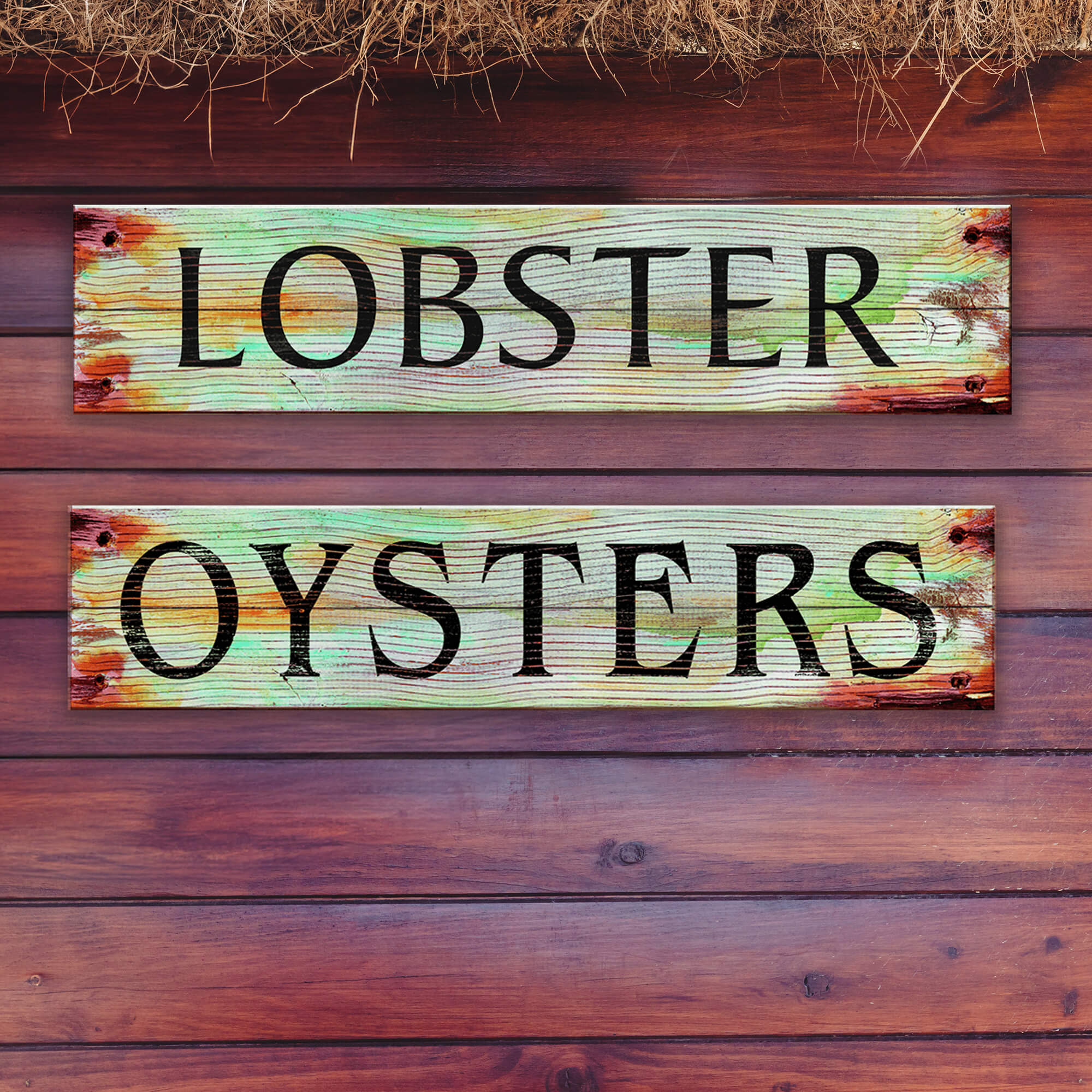 This rustic artwork features a simple yet bold design that celebrates the love for fresh seafood. The weathered look and vibrant accents make it a charming addition to coastal kitchens, seafood shacks, or any beach-themed space. Perfect for adding a touch of nautical charm to your wall décor collection.