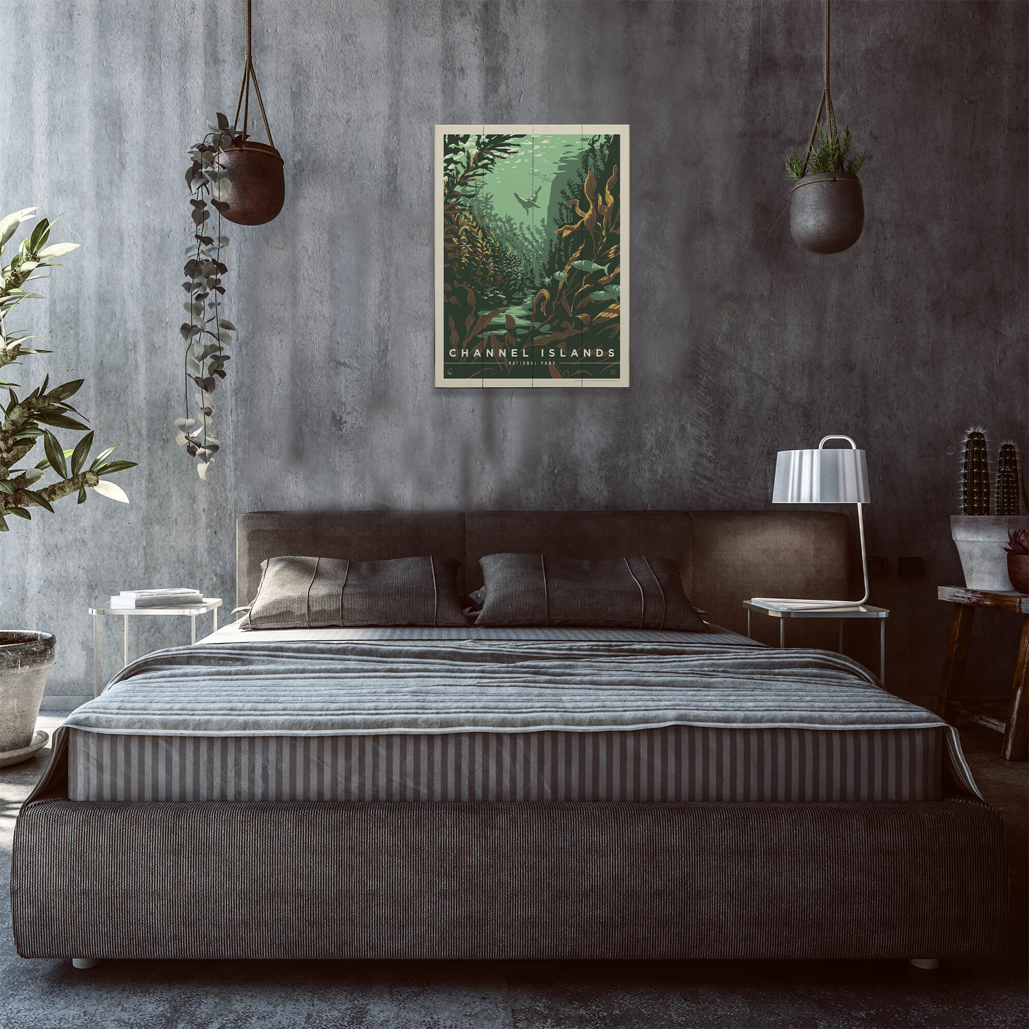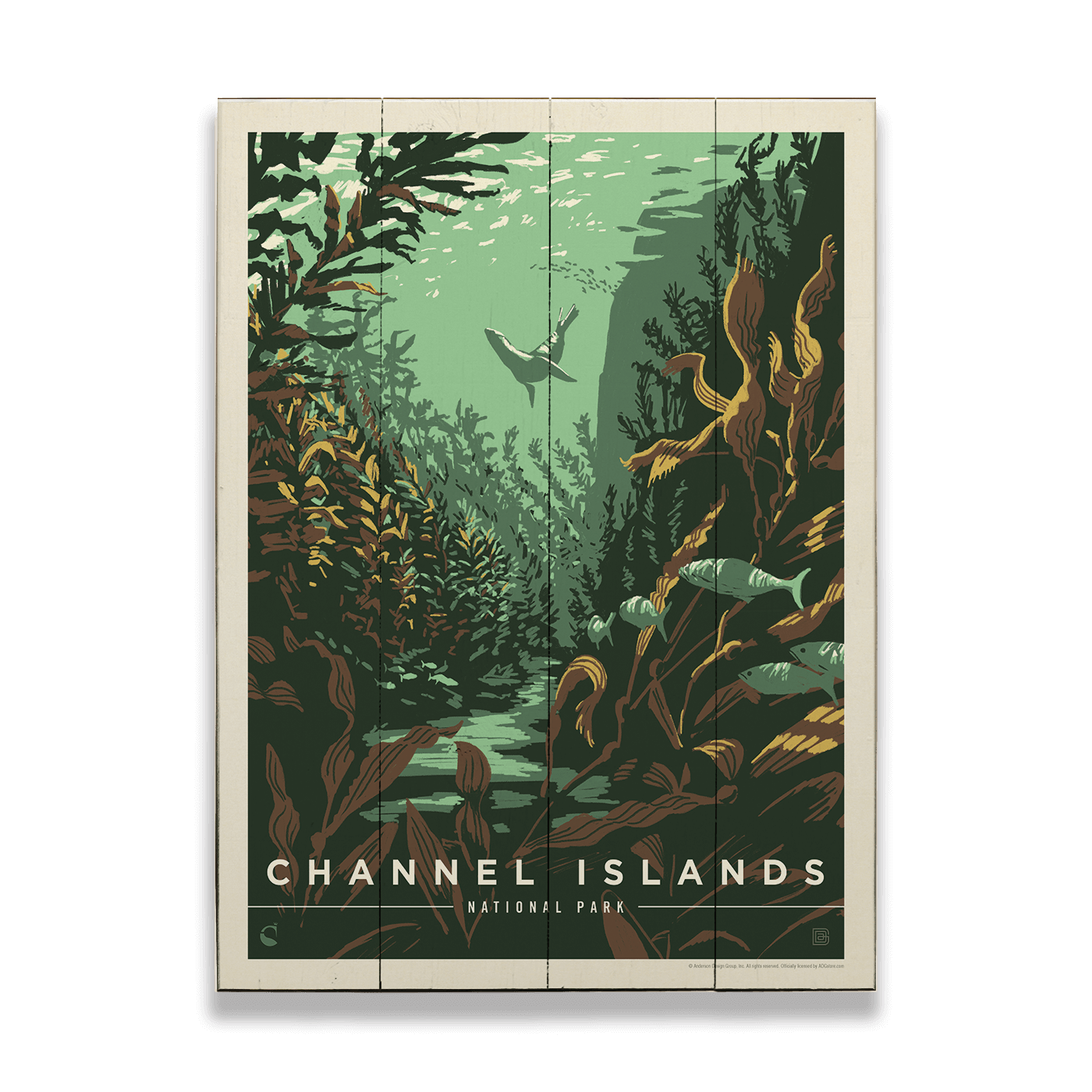 Dive into the hidden beauty beneath the waves with this striking artwork of Channel Islands National Park. A sea lion glides gracefully through a vibrant kelp forest, surrounded by schools of fish and the dappled light of the Pacific. These underwater jungles are among the most productive marine ecosystems on Earth, providing vital habitat for countless species unique to the region. Perfect for ocean lovers and conservation advocates, this piece captures the serene mystery and ecological richness that make the Channel Islands a national treasure.