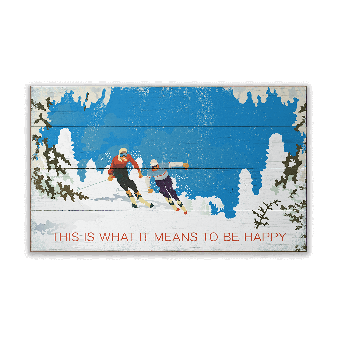 This vibrant, retro-inspired ski artwork captures the excitement of two skiers racing through fresh powder on a clear winter day. With bold colors and clean lines, the piece evokes the thrill of outdoor adventure and the joy of winter sports. The vintage design and playful typography make it an ideal addition to any space that celebrates skiing and the beauty of the mountains. Perfect for outdoor enthusiasts and vintage decor lovers alike, this artwork brings a sense of happiness and exhilaration to any room.