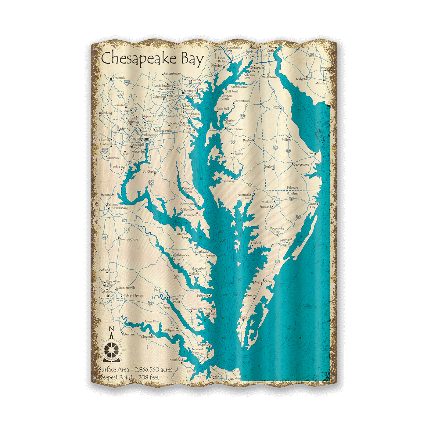 Chesapeake Bay, MD, VA, DE - Corrugated Metal Wall Art