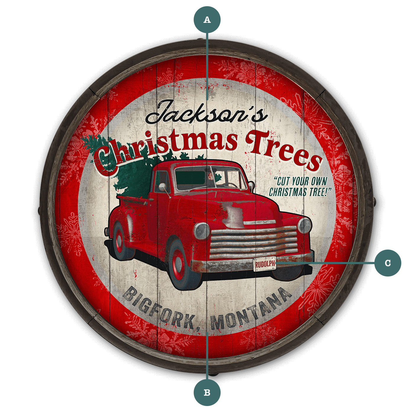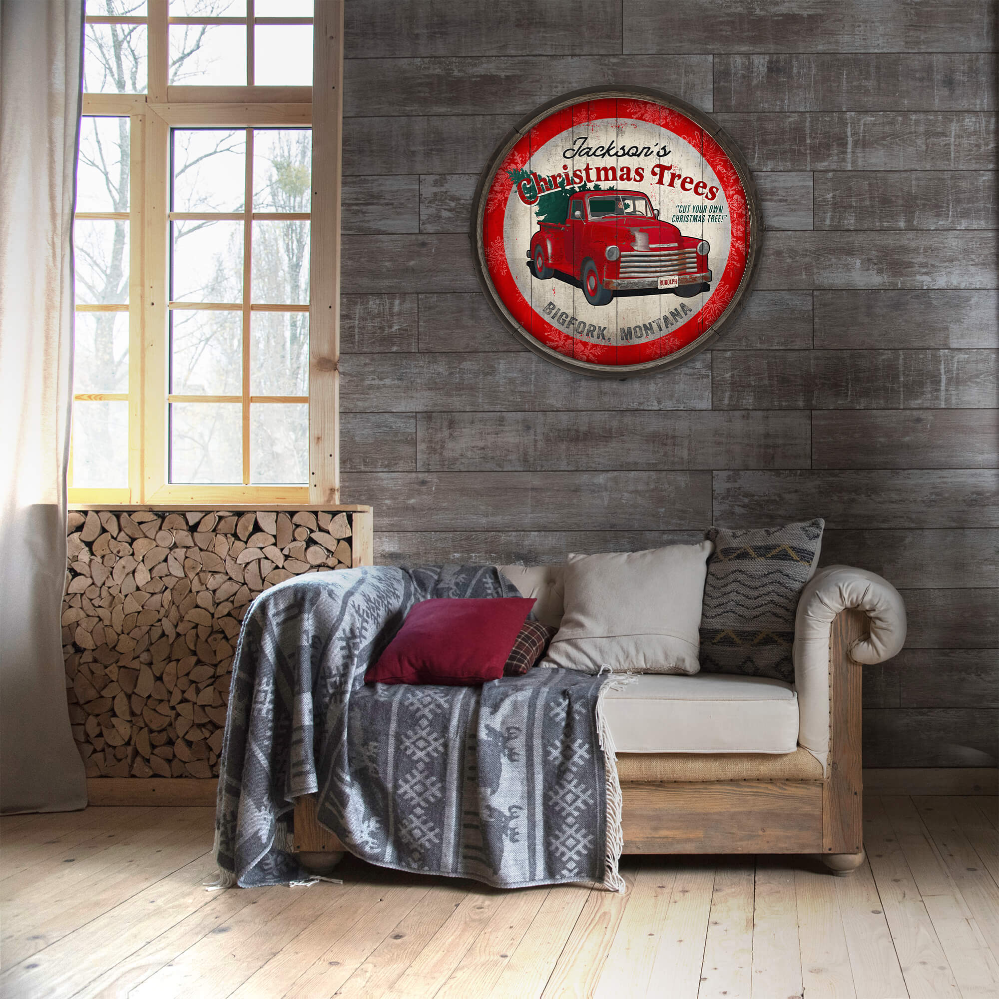 This festive artwork captures the nostalgic charm of a vintage red truck carrying a freshly cut Christmas tree. With its rustic, weathered design and cheerful holiday theme, this piece is perfect for adding a touch of classic Americana to your holiday décor. Featuring the playful tagline "Cut Your Own Christmas Tree!", this sign evokes the joy of family traditions and holiday outings. Ideal for those who love retro holiday decorations, this artwork brings warmth and nostalgia to any space, making it a great gift or seasonal display.