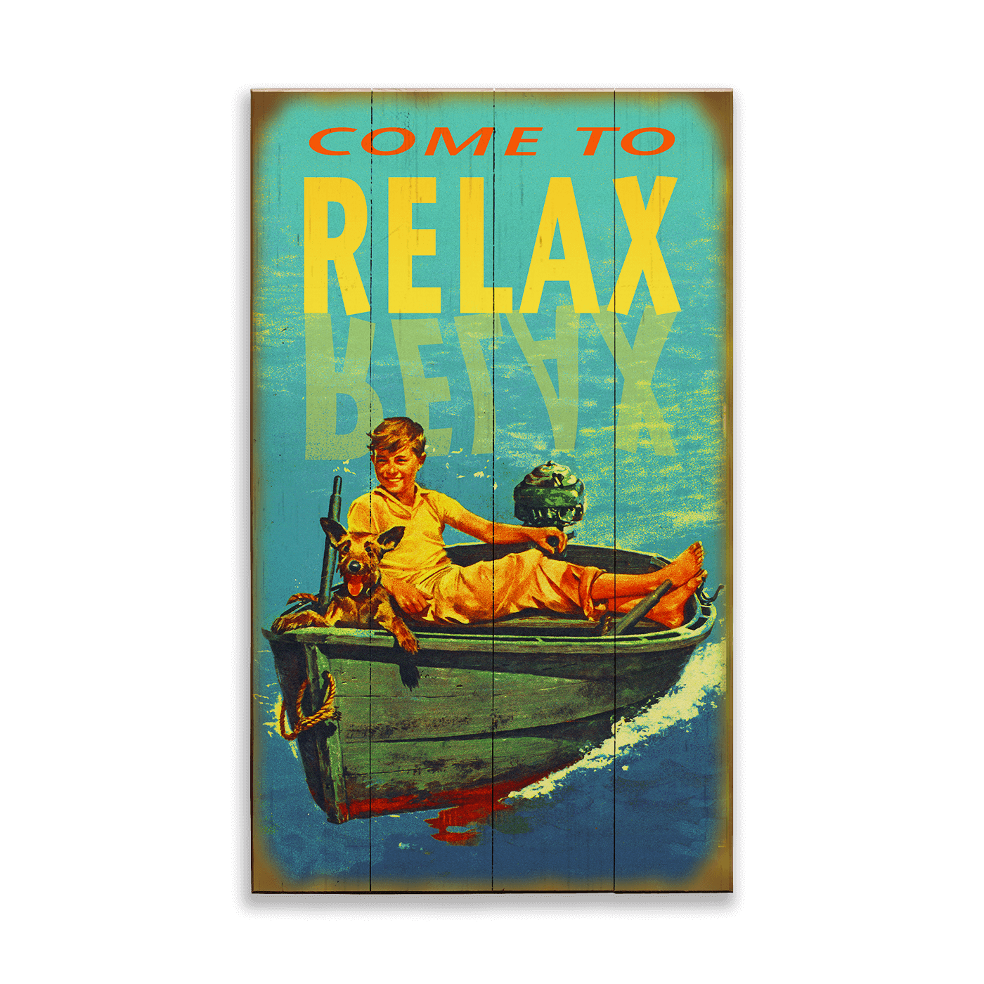 Step back in time with our 'Come to Relax' vintage-style artwork, capturing the essence of laid-back, mid-century leisure. This charming piece features a joyful scene of a young boy and his dog, both relishing a calm boat ride on a serene lake. With its vibrant colors and nostalgic appeal, this artwork is perfect for adding a touch of retro flair to your home or office. Ideal for collectors of vintage posters or anyone looking to infuse a bit of whimsical, old-school charm into their décor.