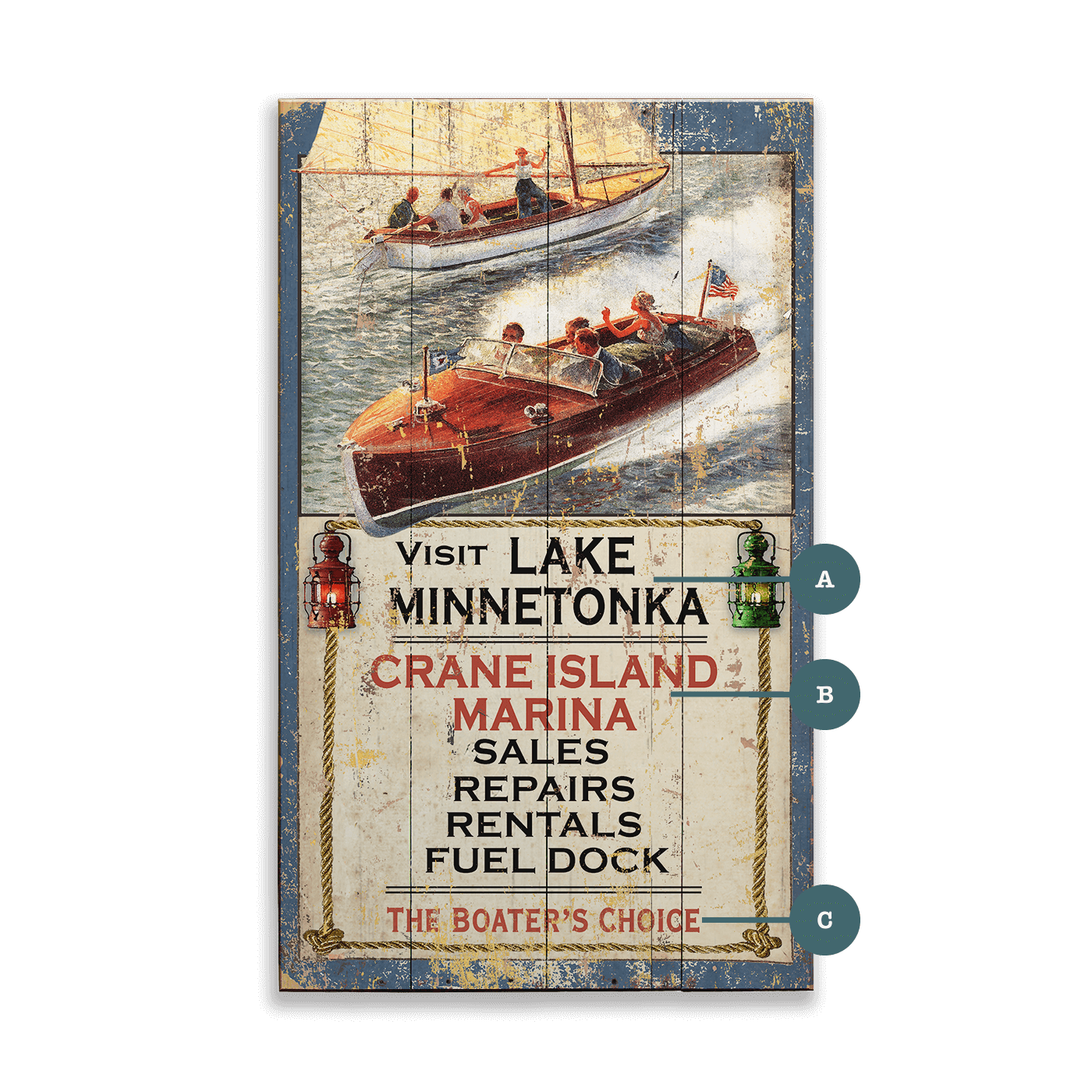 This vintage-style artwork showcases classic wooden boats speeding across a lake, capturing the excitement of summer boating. With its retro design, nautical accents, and distressed finish, it evokes nostalgia for marina life and waterside adventures. Perfect for enhancing boathouses, cabins, or coastal-themed spaces, this piece brings a lively, rustic touch to any decor.