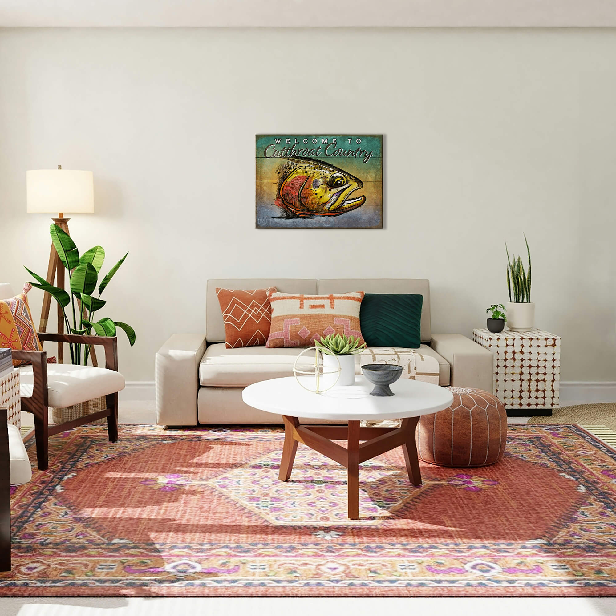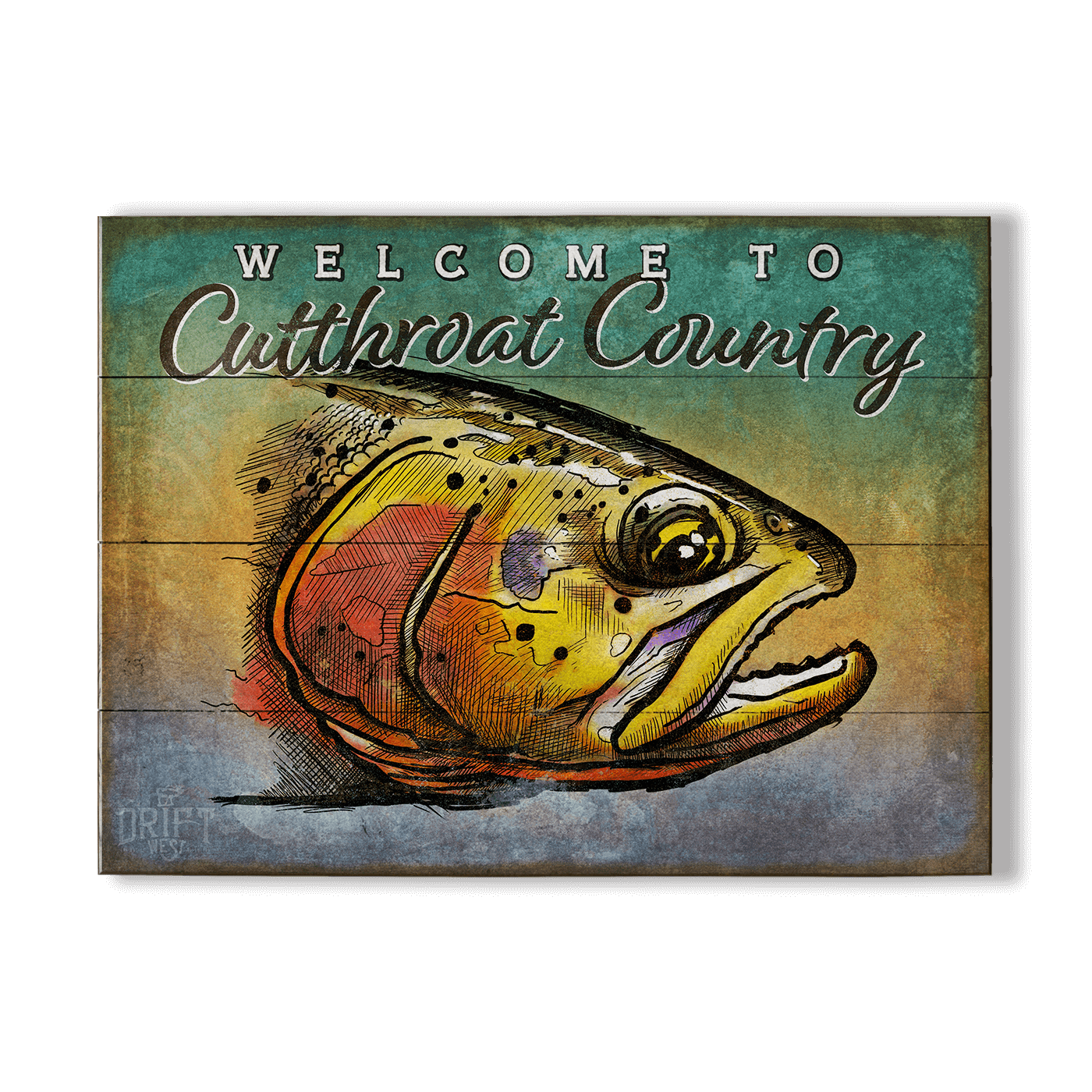 Bold, colorful, and full of attitude, this artwork pays tribute to the iconic cutthroat trout with a dynamic close-up that's both fierce and beautiful. The blend of vivid textures and stylized linework brings the fish to life against a backdrop of rich, weathered tones—perfect for anyone who feels at home on the water or in the wild.