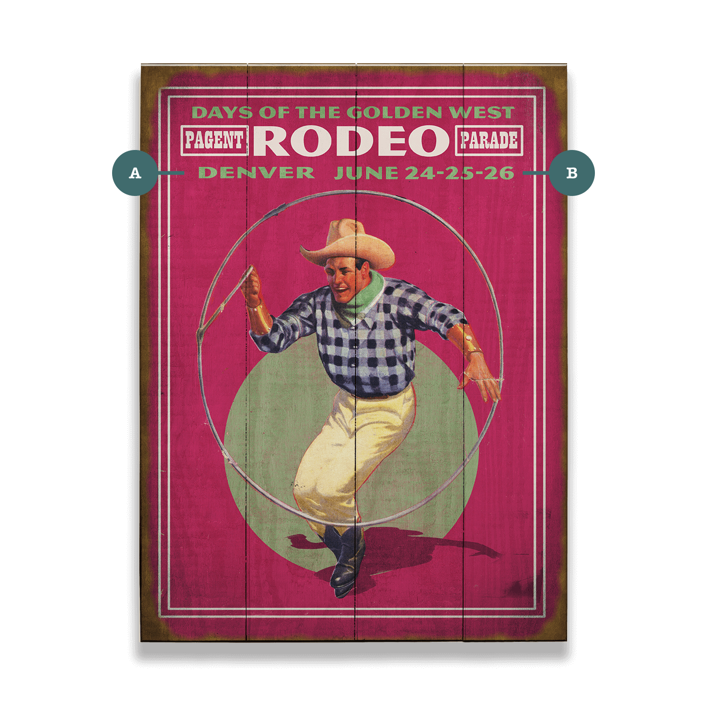 This vibrant vintage-style rodeo artwork showcases the dynamic energy of Western entertainment with a skilled trick roper in mid-performance. He expertly maneuvers his lasso, capturing the essence of showmanship and tradition. The bold fonts and distressed textures add a nostalgic charm, making this piece a standout tribute to rodeo parades and Western pageantry. Perfect for collectors, rodeo fans, and lovers of retro Americana, this artwork celebrates the artistry and excitement of the Golden West.