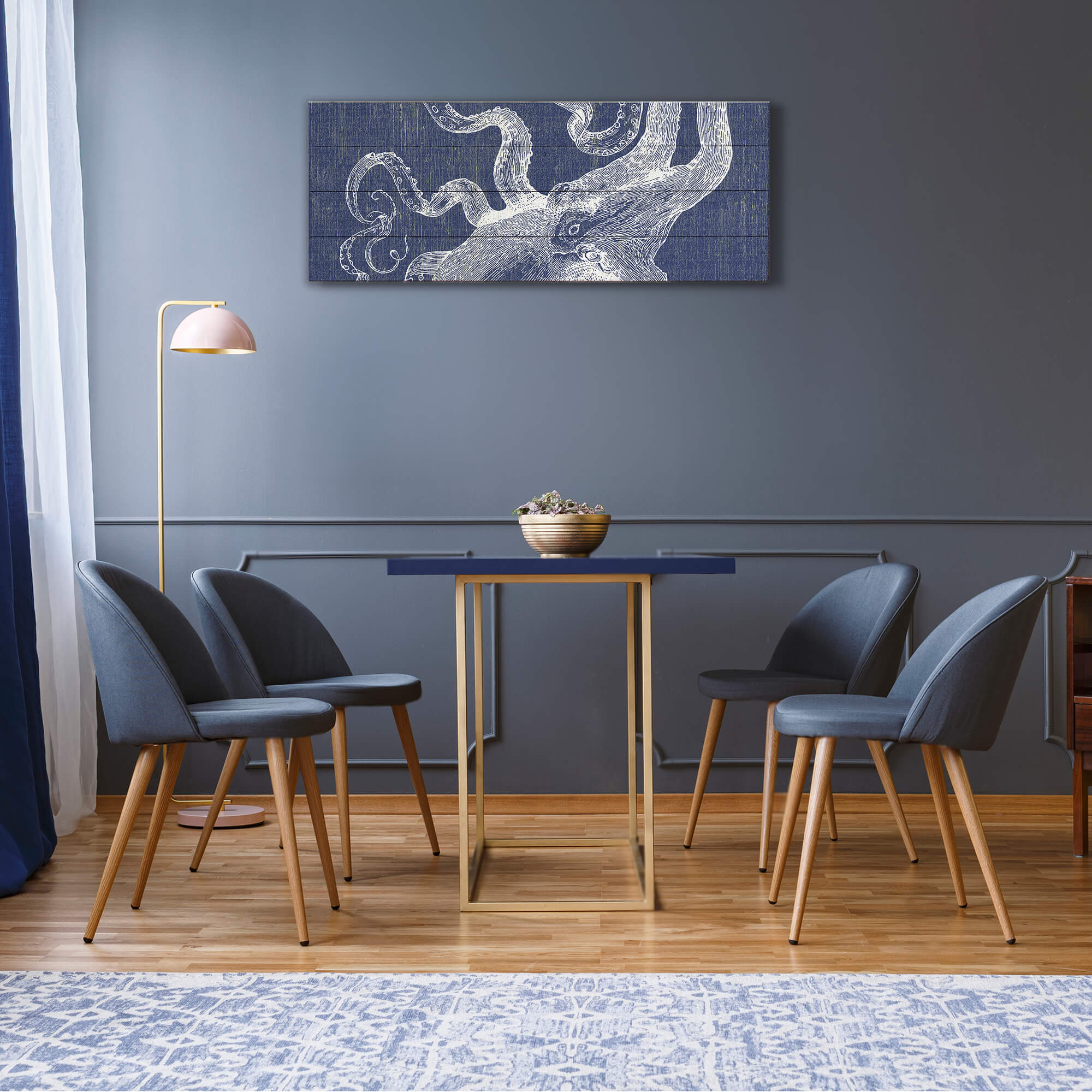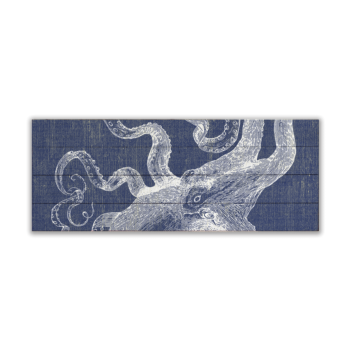Introducing a captivating octopus-themed wall art featuring a detailed white octopus illustration set against a denim blue, textured background. This piece brings a touch of coastal charm and nautical elegance, perfect for enhancing beach-inspired décor or adding marine life appeal to any space. The design is printed on high-quality wood or metal, ensuring durability and a rustic, yet modern look. Ideal for those looking to make a bold statement with their home or office decor.