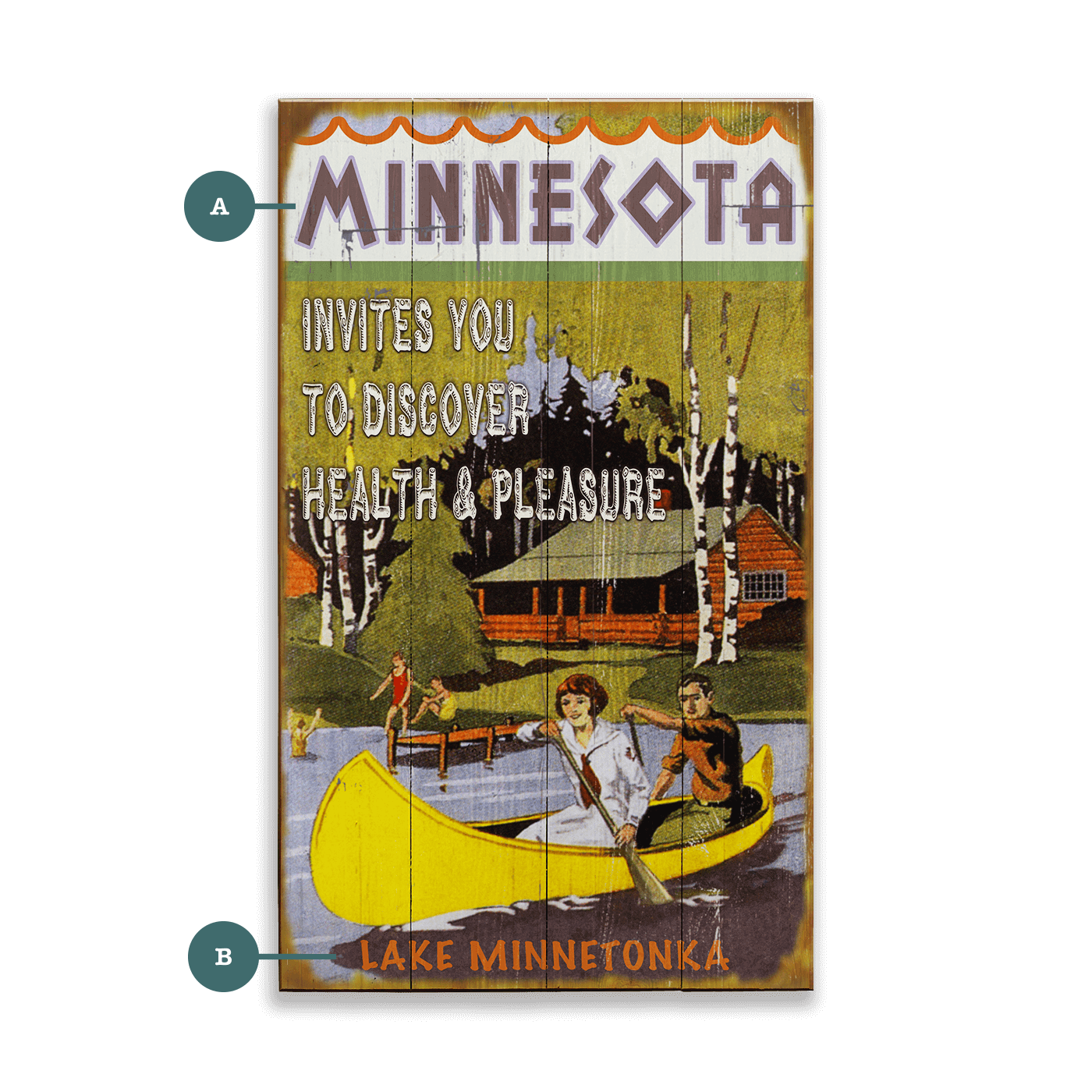 Enjoy complimentary personalization for this piece, meticulously handcrafted by our graphic design team. Specify your desired text for points A and B. To ensure perfection in your custom piece, please verify your text carefully. Missing personalization information will revert to our default design as shown. To remove all text from a field, type "Remove" in that field.