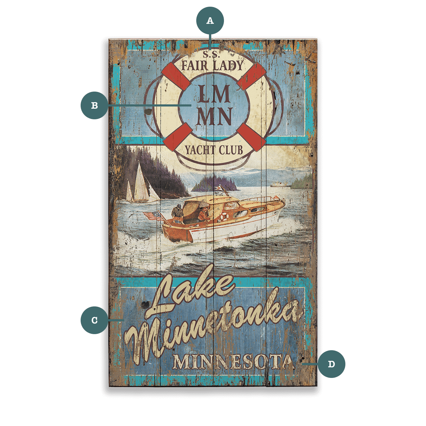 This vintage-style artwork features a classic yacht cruising along a scenic lake, capturing the charm of leisurely summer boating. With its retro design, distressed finish, and nautical theme, it evokes nostalgia for yacht clubs and lakeside getaways. Perfect for adding a touch of rustic elegance to cabins, boathouses, or coastal-themed decor, it brings a sense of timeless waterfront adventure to any space.