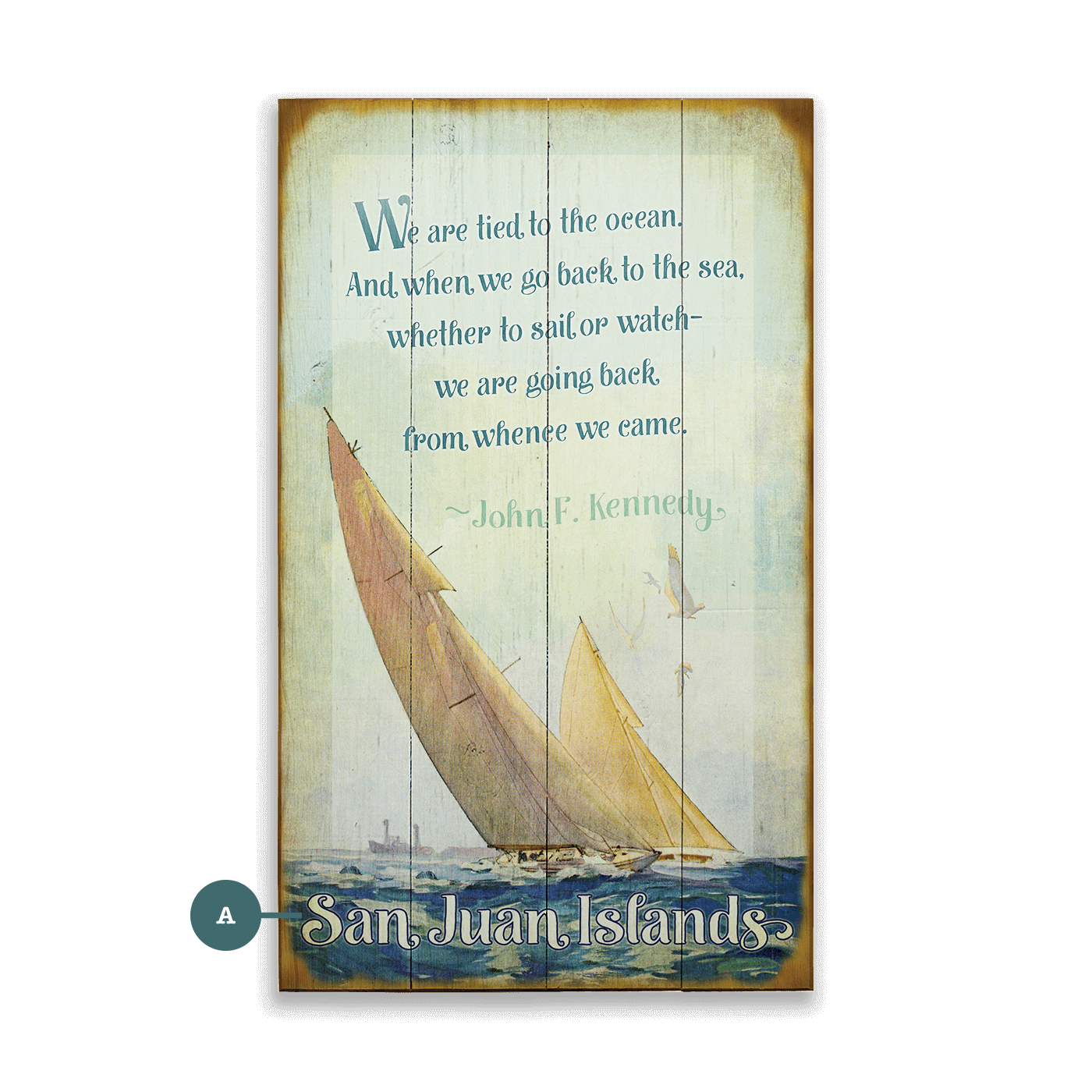 Embrace the timeless connection to the sea with this elegant vintage-style artwork. Featuring a graceful sailboat navigating the open waters, this piece captures the serene beauty and enduring allure of sailing. The artwork is complemented by an inspirational quote from John F. Kennedy, adding depth and reflection to its aesthetic appeal. Perfect for those who appreciate nautical themes and classic design, this piece brings a touch of maritime sophistication and thoughtful sentiment to any space.
