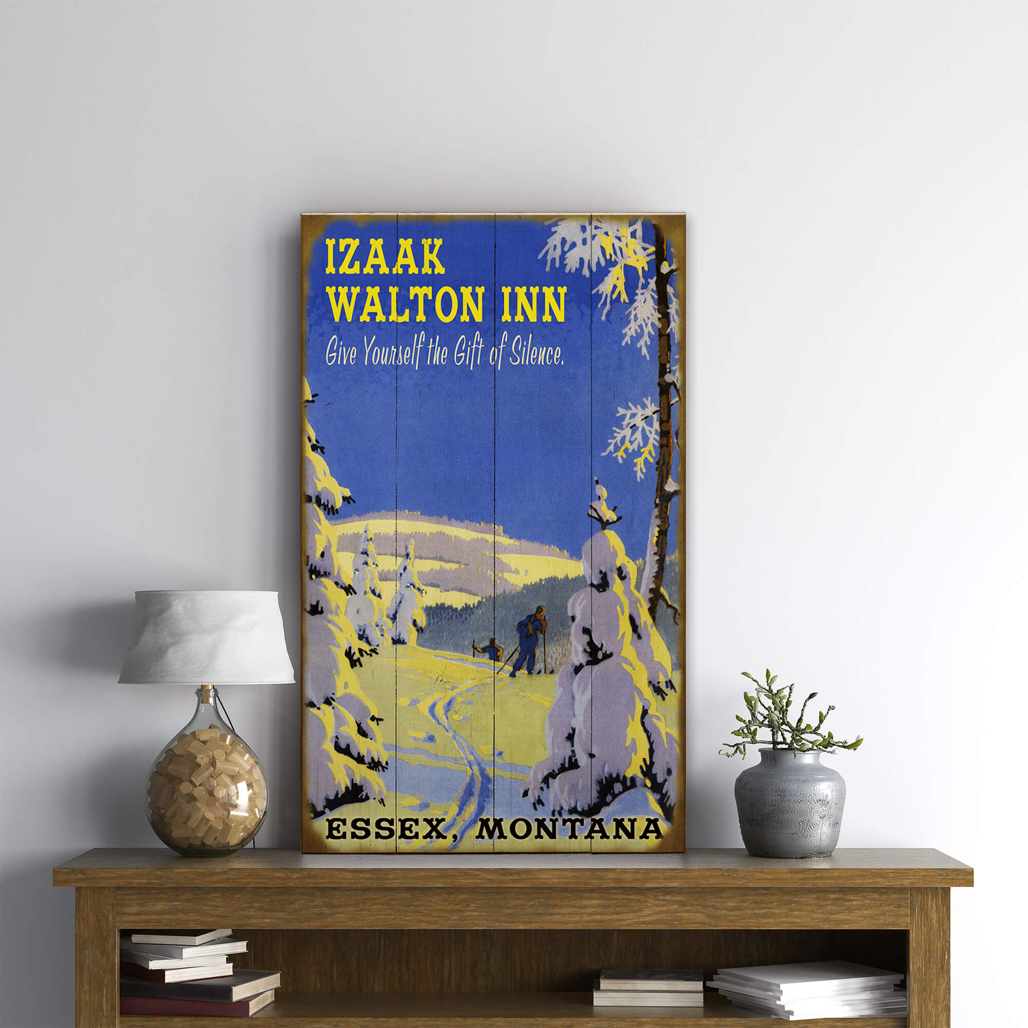 This artwork beautifully captures the tranquility of a winter escape, showcasing skiers gliding through serene, snow-covered trails framed by frosted trees and rolling hills. The soft blue and golden hues evoke a sense of calm and invite the viewer to imagine a peaceful retreat surrounded by nature. Perfectly blending vintage charm with the allure of adventure, this piece inspires the joy of exploring pristine, quiet landscapes in the heart of winter.